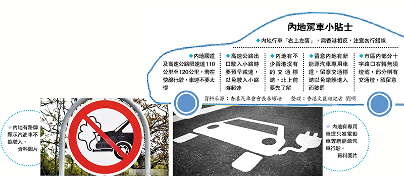 最容易中招的是內地有不少香港沒有的路牌,如巿中心有新能源車輛的專用車道,要留意有關標誌,若入錯車道便會違規。此外,兩地交通燈亦有點不同,「內地好多時交通燈有倒數功能,可以知道有多久便會轉燈,而香港則沒有。另外,部分十字路口轉右無須睇燈,但有些新的路口則有燈,所以要睇清楚路牌,到十字路口究竟有沒有燈要睇,這亦需要留意。」