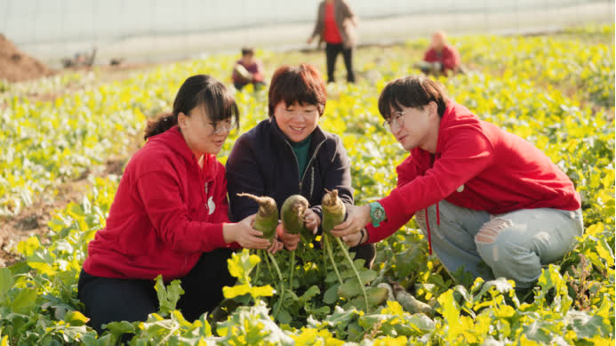 今年,他們負責的土地從之前的20畝拓展到了150多畝,引入黑皮花生、奶白菜、紫色油菜以及各種各樣的胡蘿蔔,還在大棚裏種了玉米,並想給所有蔬菜都「富上硒」。「不僅要種好,賣好,還要領人來玩!」