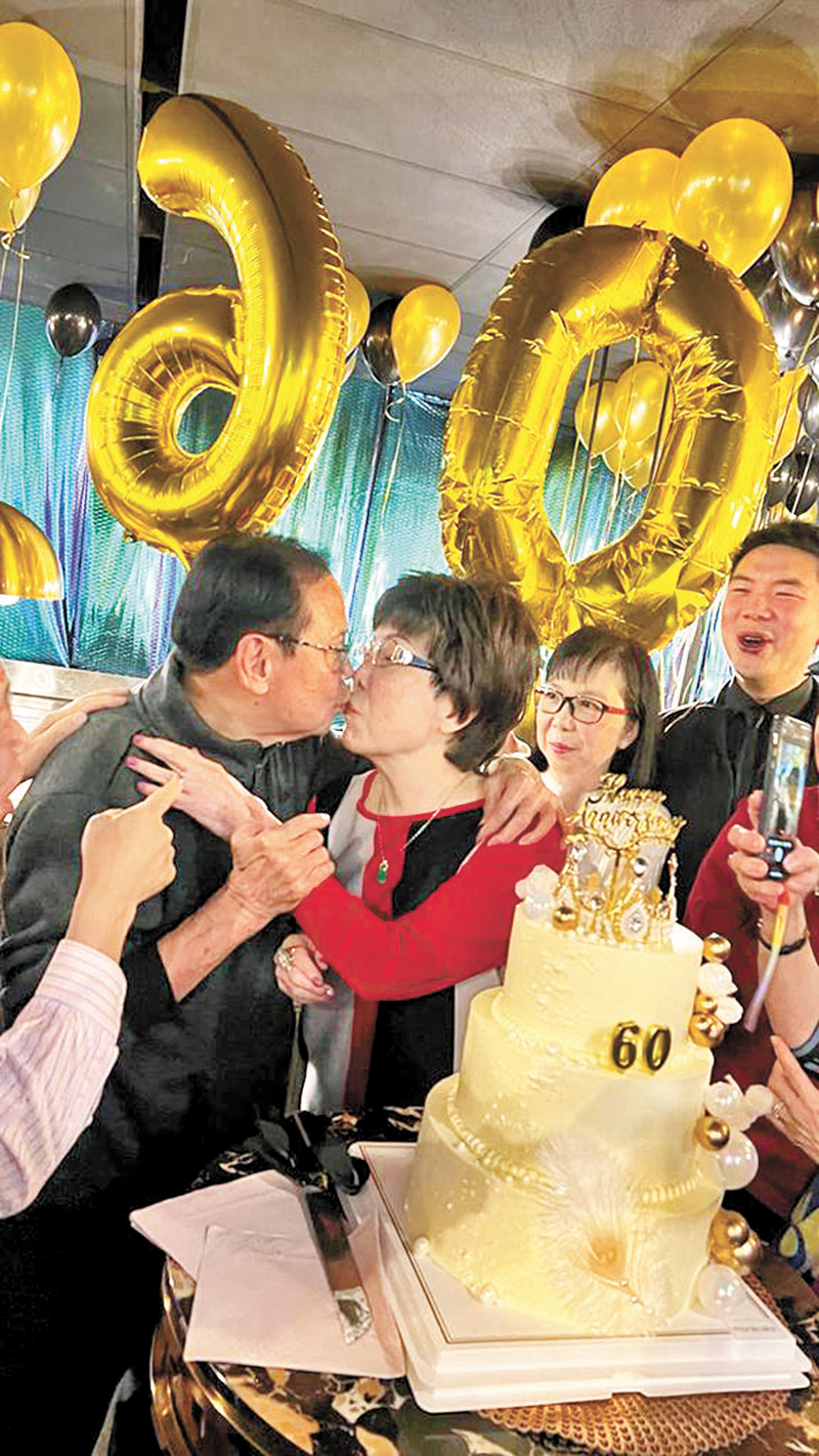 香港文匯報訊 今年是現年87歲的粵語片年代當紅小生、《歡樂今宵》元老級主持杜平與太太的60周年鑽石婚紀念,廣邀親朋好友到澳洲參加其慶祝派對,筵開23圍超過200名賓客到場,多位藝人包括杜平的契仔女溫兆倫和翁虹、當年《歡樂今宵》拍檔修哥胡楓、蔡和平夫婦、森森、吳麗珠、鄧英敏、梁碧玲,以及王祖藍及太太李亞男等飛赴當地道賀。
