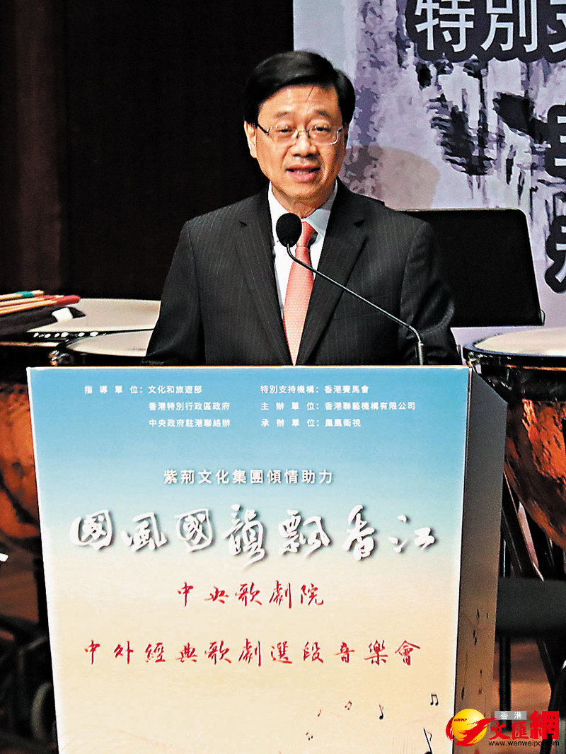 (香港文匯報記者 子京)由中央歌劇院與香港樂團攜手演出的「國風國韻飄香江——中央歌劇院 中外經典歌劇選段音樂會」於5月6日和7日一連兩晚在香港大會堂音樂廳舉行。今次中央歌劇院攜同國家一流水準劇目來港獻藝,香港樂團及知名男高音莫華倫亦參與演出,為香港觀眾送上一場融合音樂、歌劇、話劇、舞蹈的文化盛宴。在昨晚的首場演出,特區行政長官李家超、香港中聯辦主任鄭雁雄等出席主禮並致辭。李家超致辭表示,特區政府大力支持香港表演藝術團體和藝術家在大灣區其他城市演出和創作,並將資助入圍「國家藝術基金」的香港項目在境外演出、展覽和參加活動,展示中華文化精品。