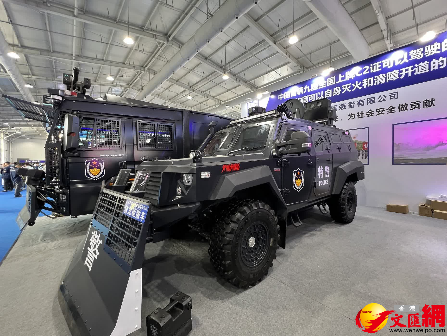 中國首輛九座全國上牌C2證可以駕駛的裝甲防暴車、中國首輛可以自身滅火和清障開道的防暴驅散車、哈瓦·特種裝備無人機、單警無依託攀爬助力系統……本網記者在現場看到,今年的警博會吸引諸多國內國際先進警用裝備企業參展,他們帶來各領域最新裝備技術產品。警用特種車企業工作人員介紹,香港警方就曾購置「劍齒虎」裝甲防暴車,這款車是採用美國進口福特F550車改裝而成的9噸級裝甲車,車身採用進口防彈材料製作並採用重疊式防彈結構設計,防護性非常高。適用于軍隊、武警、公安、邊防等部門執行反恐維穩、邊防巡邏、緝毒抓捕等任務。