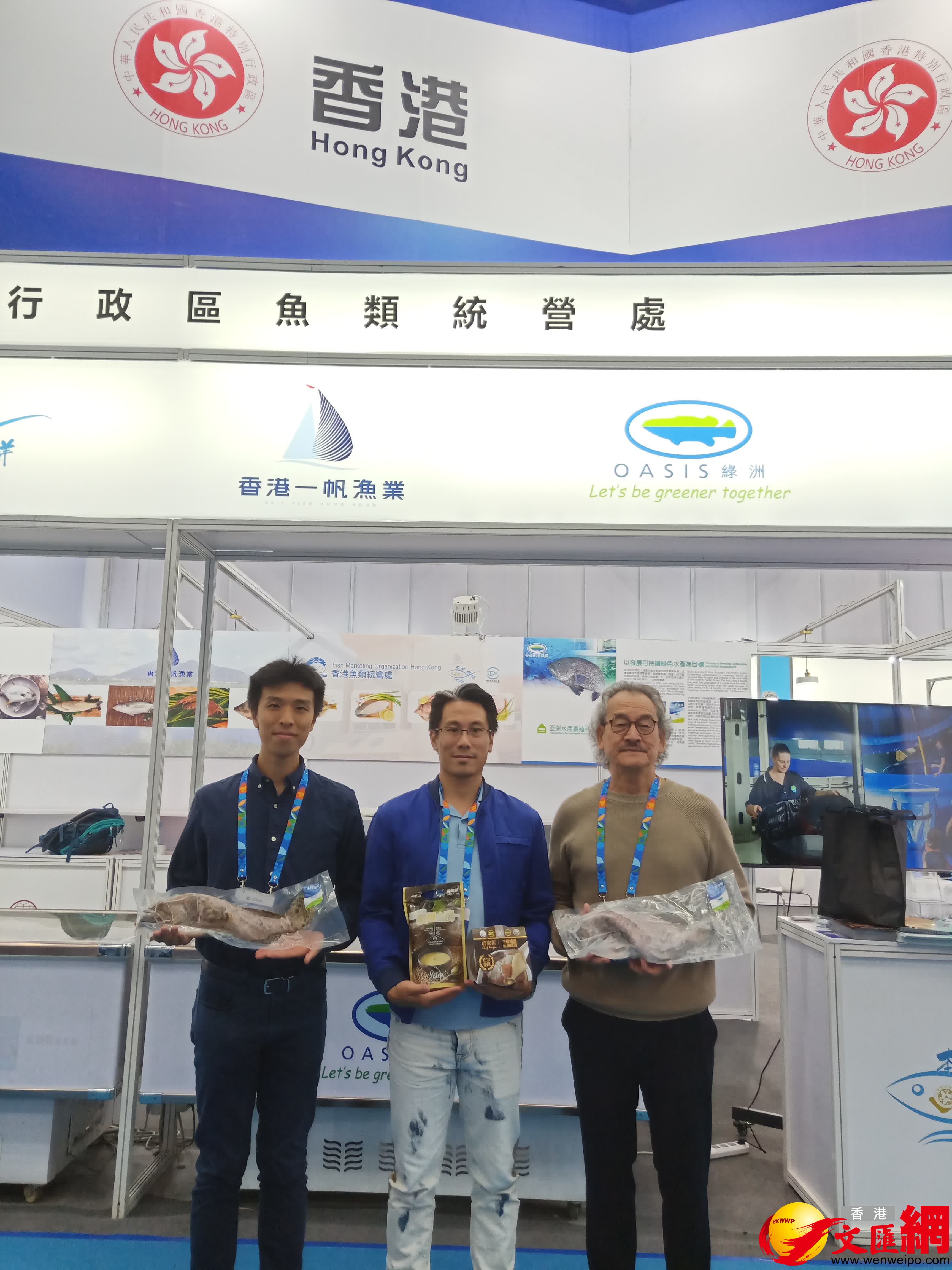 成立於2003年的香港亞洲水產養殖科技有限公司首次參加深圳漁博會,他們帶來綠洲花尾龍躉、藍鑽斑等海魚產品,希望向內地觀眾展示其海鮮產品和可持續發展的養殖科技技術。