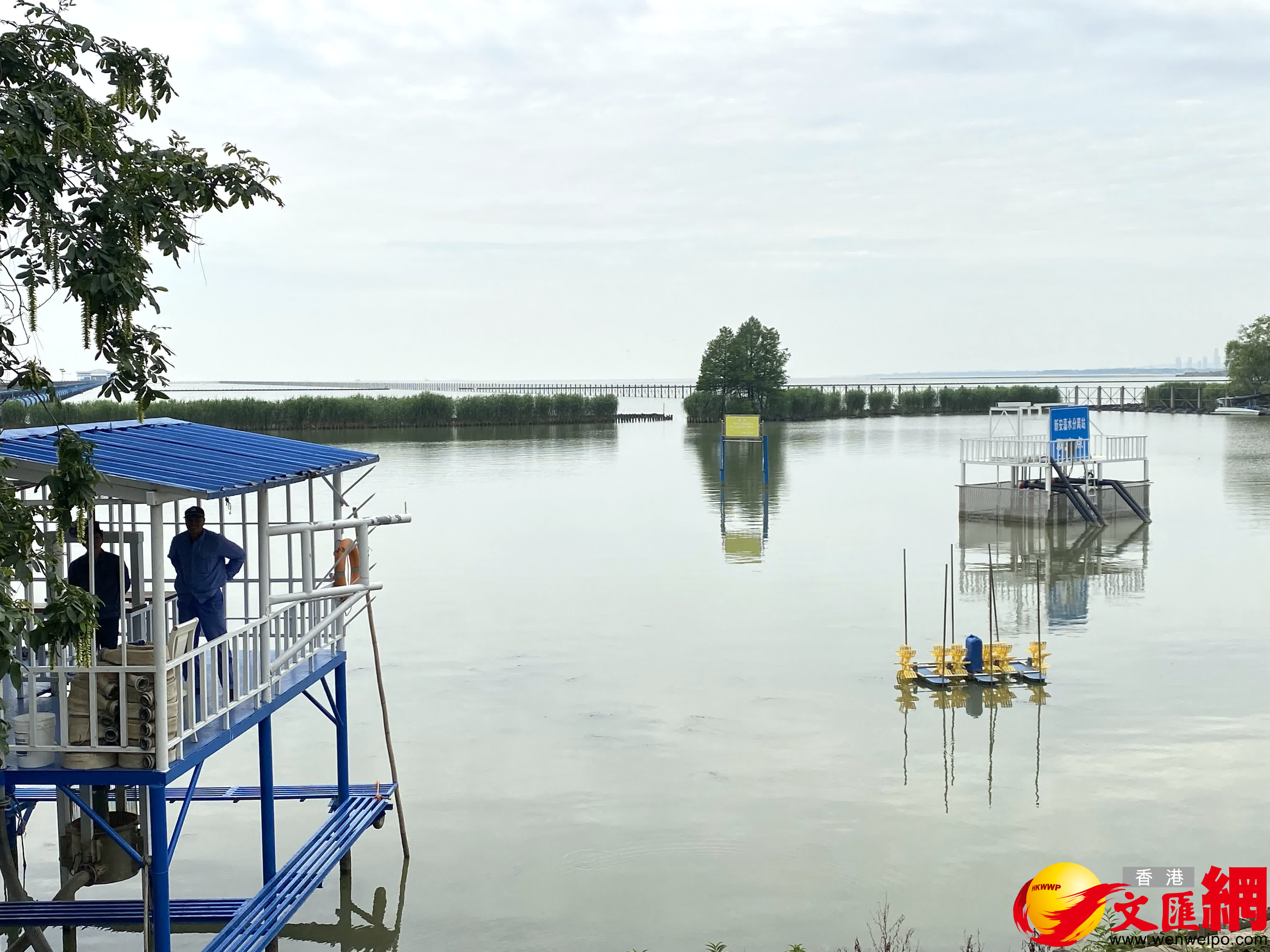 (香港文匯網記者 陳旻 無錫報道)「每年6至9月是太湖藍藻生長聚集期,我們太湖沿線藍藻水草打撈處置工作從今年3月1日就開始了。」5月中旬,無錫新吳區新安街道辦事處副主任鄒文偉在太湖岸邊對記者介紹,2022年,該街道所承擔的湖岸線太湖藍藻處理出現拐點,「往年每年打撈藍藻16、7萬噸,但去年是6萬噸」,這得益於他們持續「退捕禁捕、清淤和控污截污」,形成一整套智能高效太湖治理模式。
