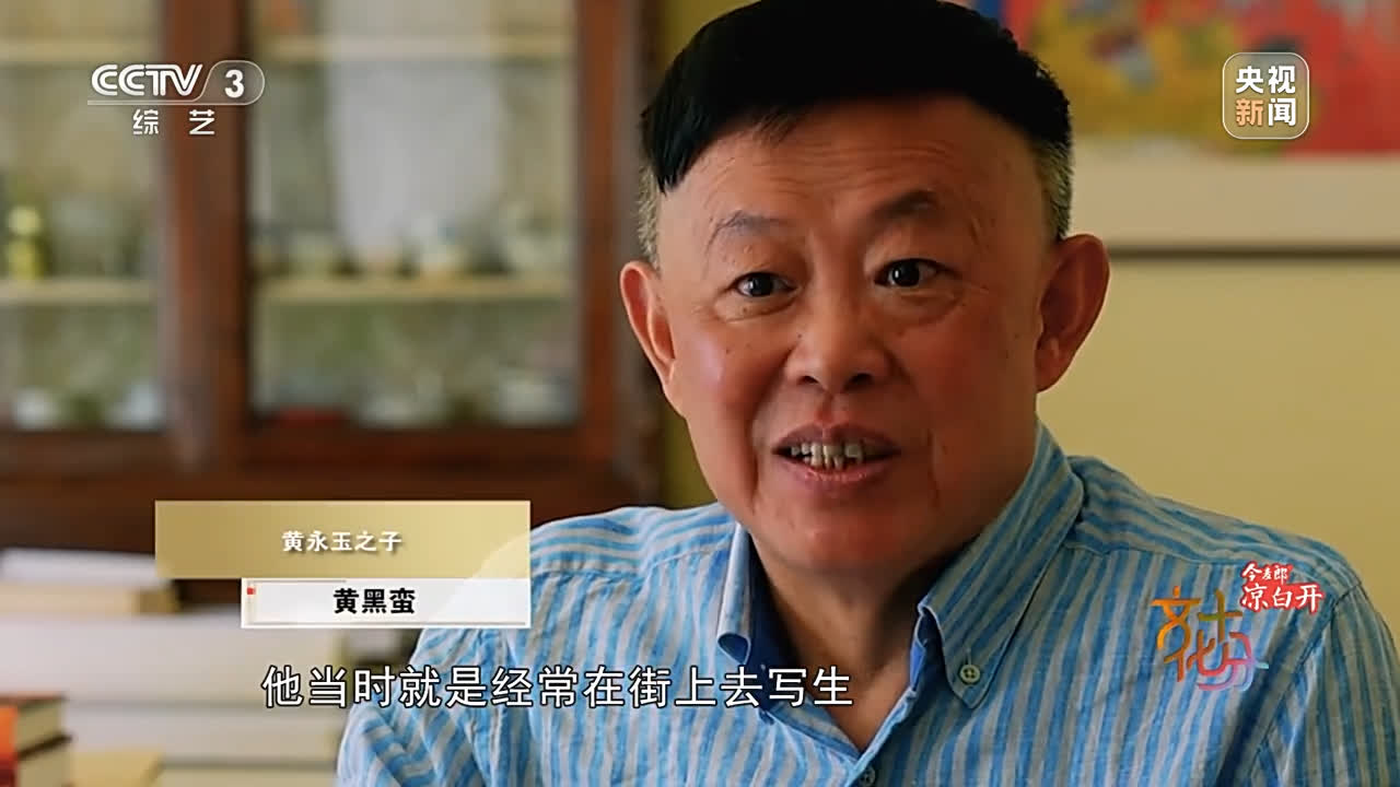 黃永玉的兒子 黃黑蠻:他每到一個地方就是沒有想到玩,都帶着紙、帶着筆,然後馬上就畫一幅畫。比如說,他去德國旅行的時候,他就從山下開始,第一步上山就畫一幅畫,然後一步一步半山腰也畫,看到泉水了,看見什麼鳥了,看見什麼樹了,就畫了幾十張,上一次山。後來有一個朋友就講,這就等於是行為藝術,就是自己一個畫家的行為藝術。