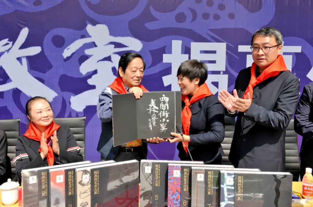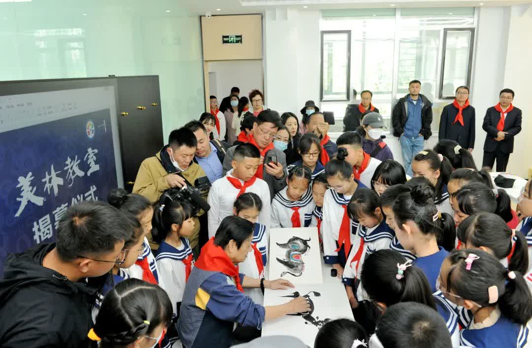 隨後,韓美林藝術基金會秘書長周建萍與西寧市西關街小學校長童永菊共同為「美林教室」揭幕。