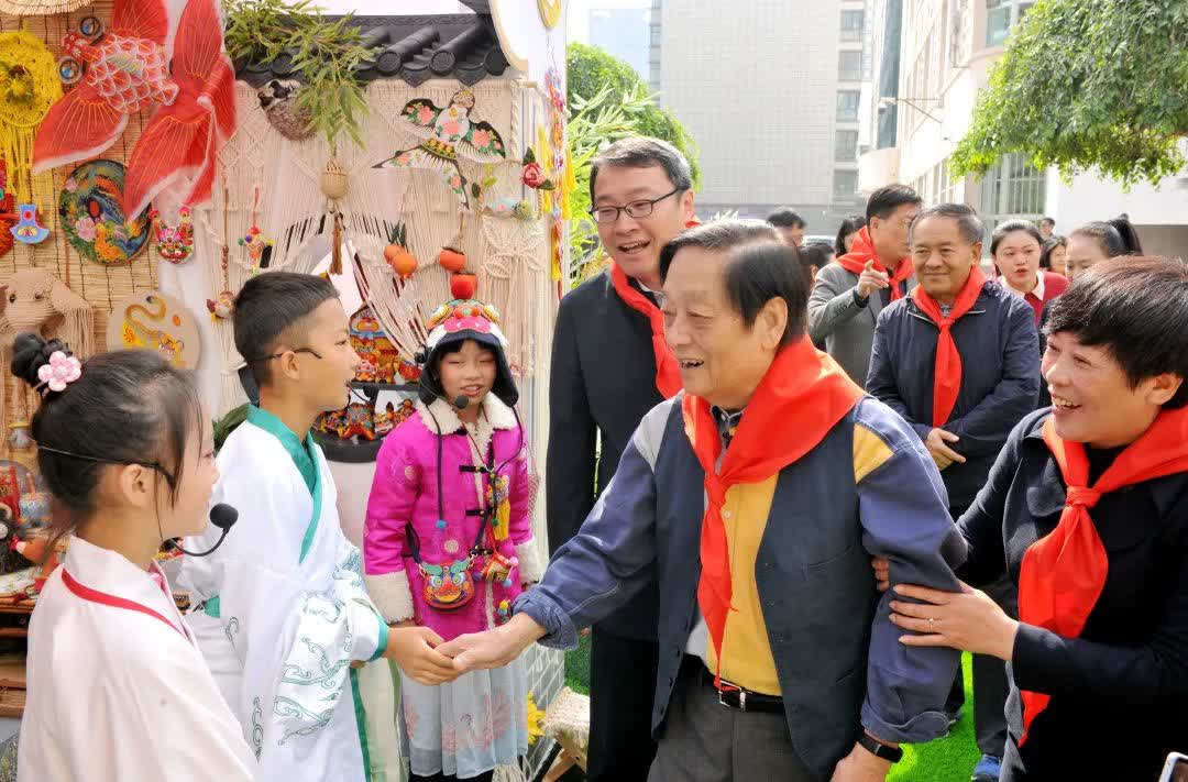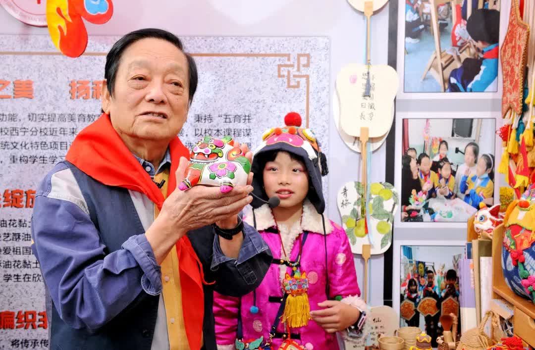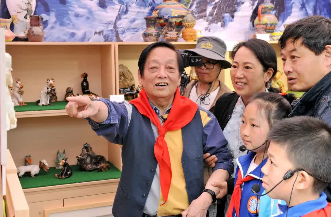 揭幕儀式後,韓美林與嘉賓們共同參觀西寧市城中區16所學校的美術作品展區。在小小講解員的介紹下,韓美林一一參觀了每一所學校的成果展示,生怕漏掉任何一件作品。看着孩子們在不同藝術門類上創作的作品,他不停感慨:「孩子們太棒了!他們的作品充滿童真,也帶給了我很多啟發,我還要向孩子們學習。」