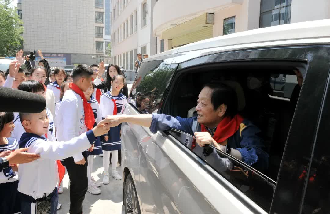 韓美林在致辭中分別對大自然、老師、母親表達感謝,感恩大自然滋養萬物;感恩老師諄諄教誨;感恩母親悉心呵護。看着台下一張張熱情洋溢的笑臉,聽着孩子們一聲聲動人的呼喚,韓美林更是動情地說:「未來,你們中間肯定會湧現科學家、教育家、藝術家……相信你們跟我一樣,不會忘記祖國、老師和母親,我在北京等着你們的好消息。」