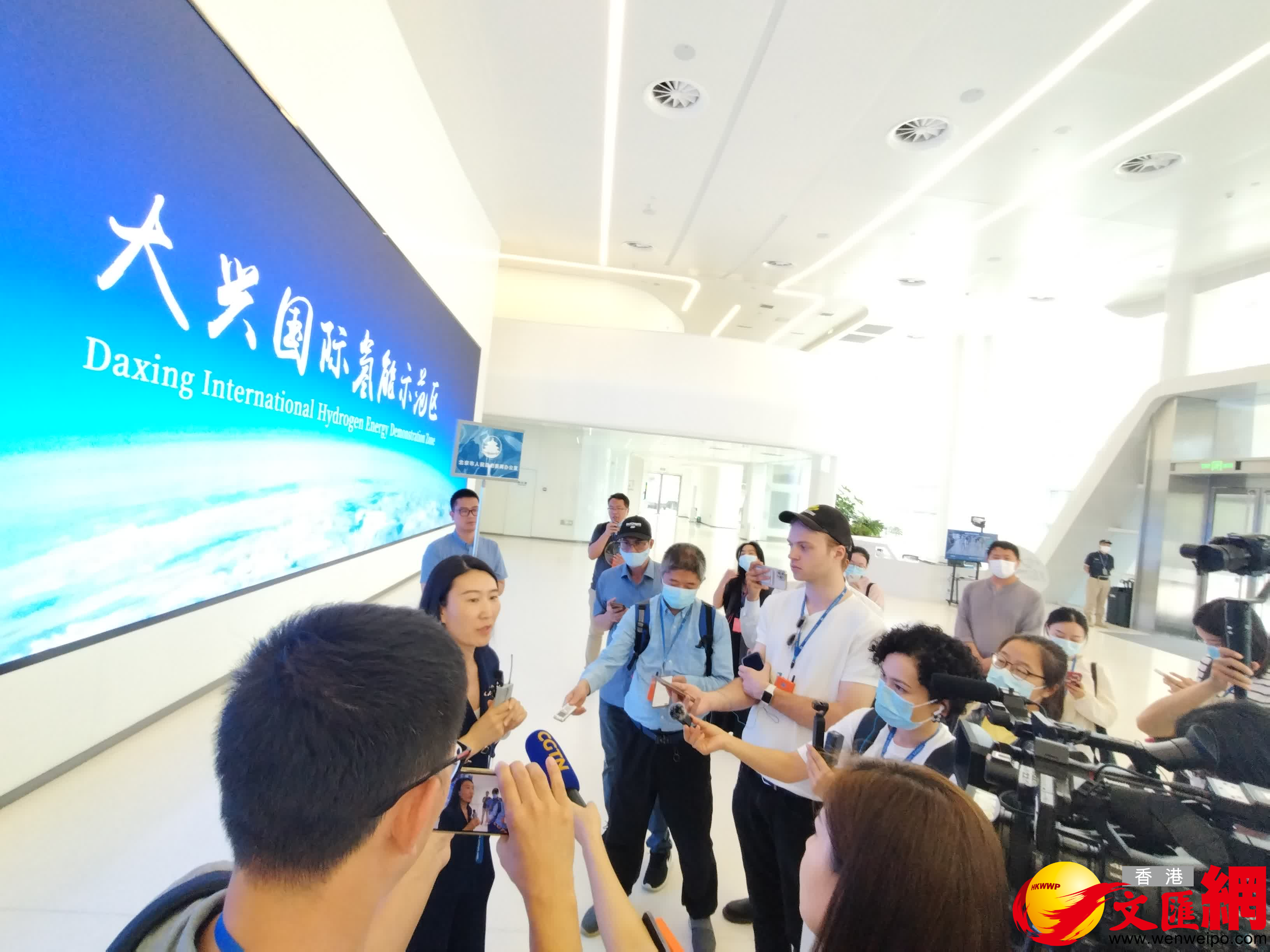 在北京大興國際氫能示範區,記者們走進氫能交流中心,被展覽的加氫站模型、氫燃料發動機、氫能單車、氫能摩托車、氫能叉車、氫能汽車等展示品吸引。大家詳細了解氫的制、儲、運、加和氫燃料電池產業鏈技術成果,還參觀了全球日加氫量最大的海珀爾加氫站,並走進大興國際氫能示範區公共測試區,觀摩電堆和發動機測試設備。