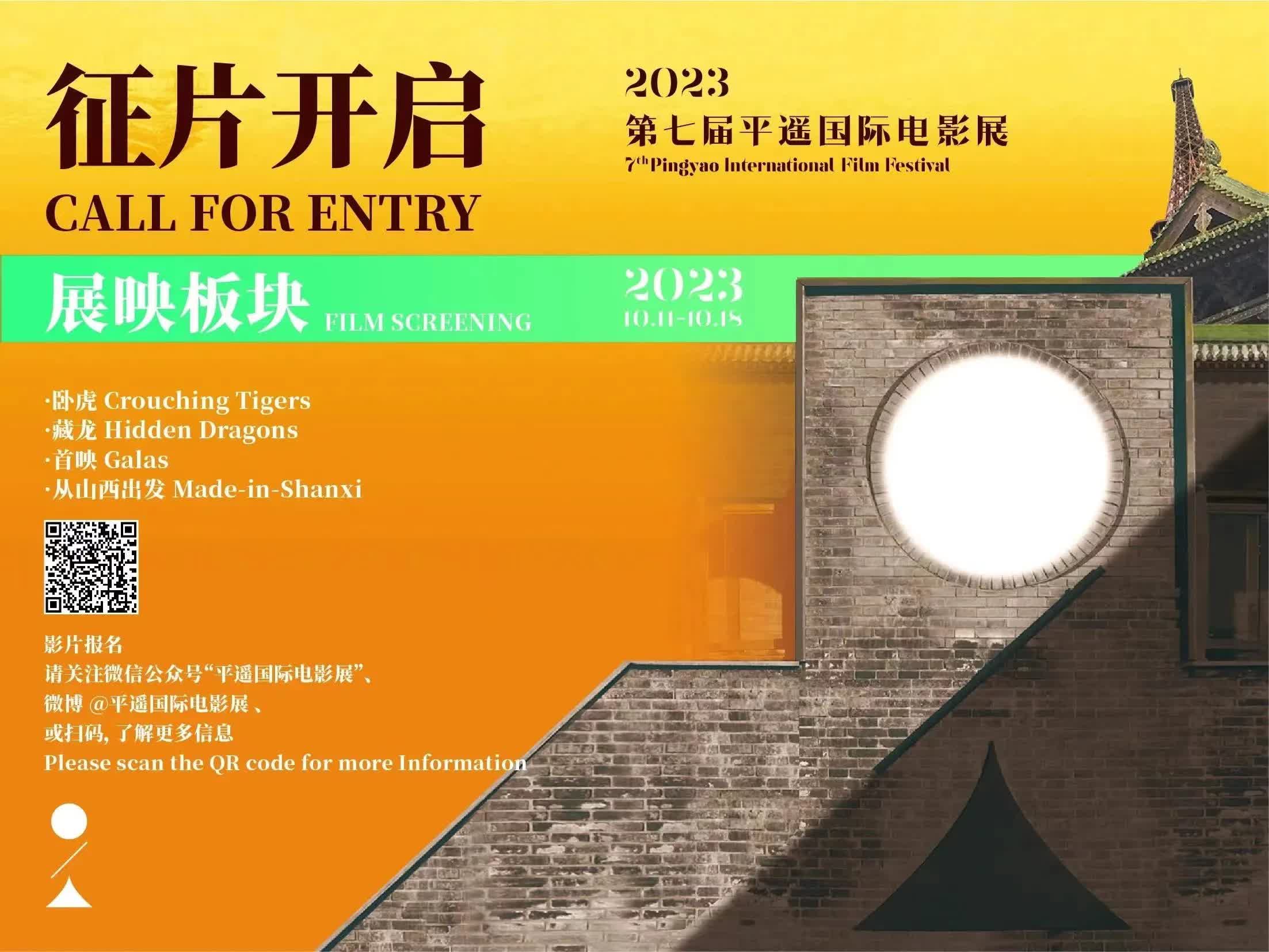 即日起,第七屆平遙國際電影展正式面向全球徵片,徵片時間將持續至8月12日。報名影片可登錄平遙國際電影展官方網站進入影片報名通道進行網上報名,或通過平遙國際電影展官方微信公眾平台、官方微博了解更多報名信息。報名影片將有機會入圍第七屆平遙國際電影展官方展映單元進行展映。在「藏龍」單元入圍影片中,將有一部優秀影片獲得100萬元現金獎勵,將有一位優秀導演獲得20萬元現金獎勵。本屆電影展「藏龍」單元報名影片至少須為亞洲首映。