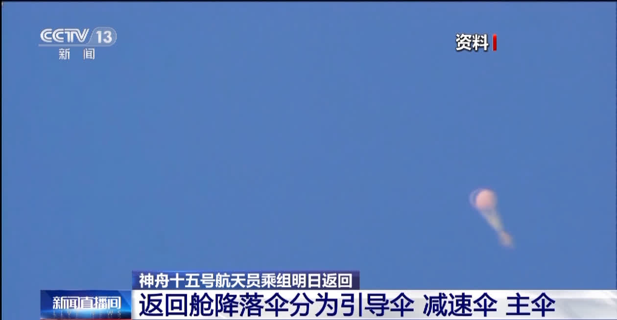 航天科技集團五院載人飛船系統副總設計師邵立民表示,收口狀態就是這個傘沒充滿,但是它的面積已經相當大了。因為這時候速度很快,直接就是最大的阻力面積的話,一方面是對航天員的過載影響很大,過載是有要求的,因為就像踩剎車一樣,還有一方面傘本身強度也是有限的。
