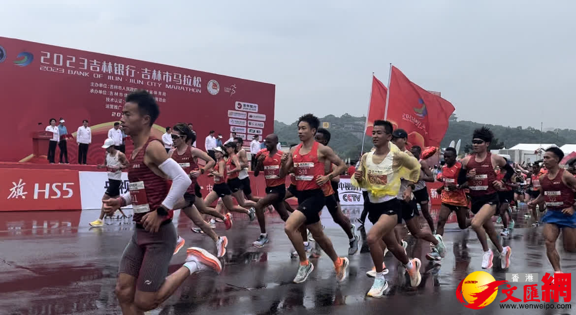 (香港文匯網記者 盧冶)6月11日清晨,2023吉林市馬拉松在人民廣場準時鳴槍開跑,初夏的大雨澆不滅奔跑的溫度,來自世界各地的30000名選手在雨中沿松花江岸競速。