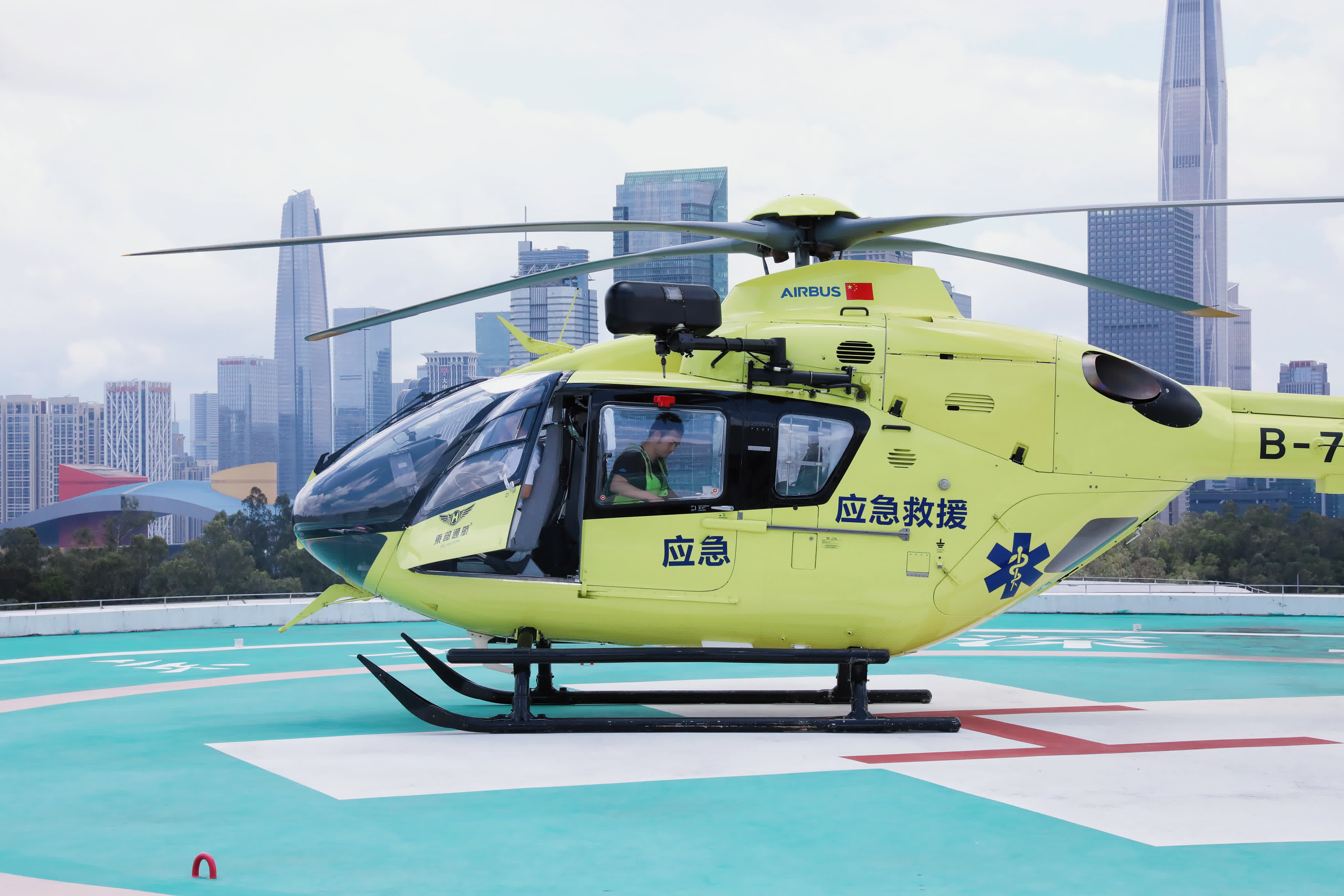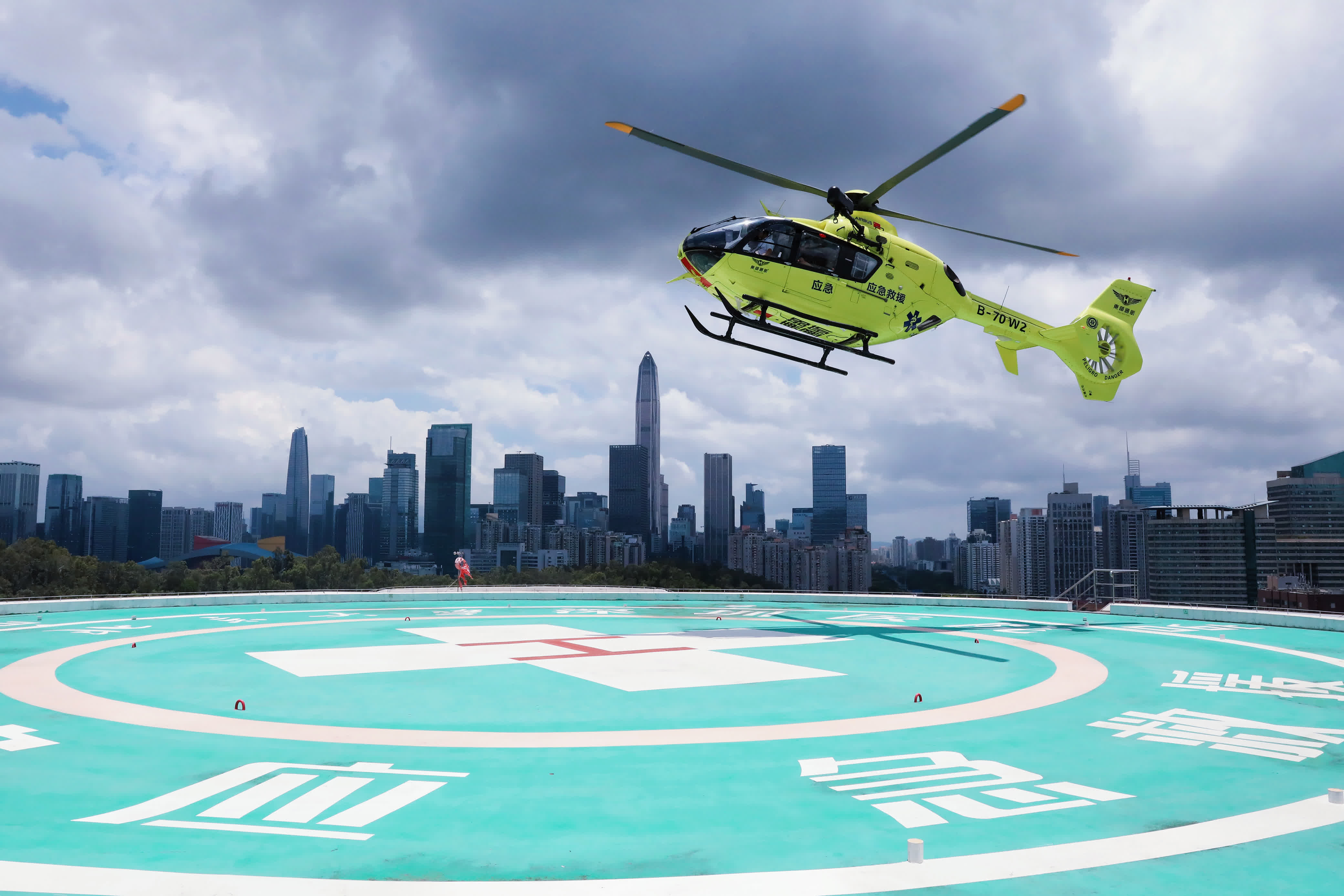 考慮到患者病情緊急,深汕門診部迅速向北大深圳醫院請求支援轉運。但是,深汕合作區距離北京大學深圳醫院最短距離120公里,即使不堵車,救護車陸路轉運也需要約2小時。速度就是生命,醫院決定立即啟動直升機航空救援。從深汕合作區直升機臨時起降點起飛到安全降落至位於鬧市中心的北大深圳醫院外科樓停機坪,全程僅用時29分鐘,轉運過程節省1.5個小時,轉運效率提升4倍。