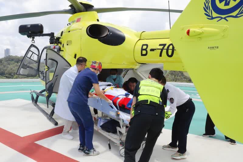 (香港文匯網記者 郭若溪)近日,一名在深汕合作區交通事故中受傷的急診患者在直升機的救助下,29分鐘就被成功轉運至北京大學深圳醫院。在直升機停穩後,嚴陣以待的北大深圳醫院創傷團隊,快速將這名已辦理綠色通道「一鍵通」的創傷患者抬下,迅速繞行急診,用專用電梯直送入院搶救。此次直升機救助節省了1.5個小時,為這名遠離深圳市區的多發傷患者獲得確定性救治贏得「白金90分鐘」。