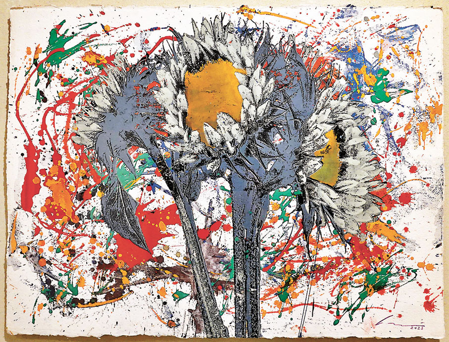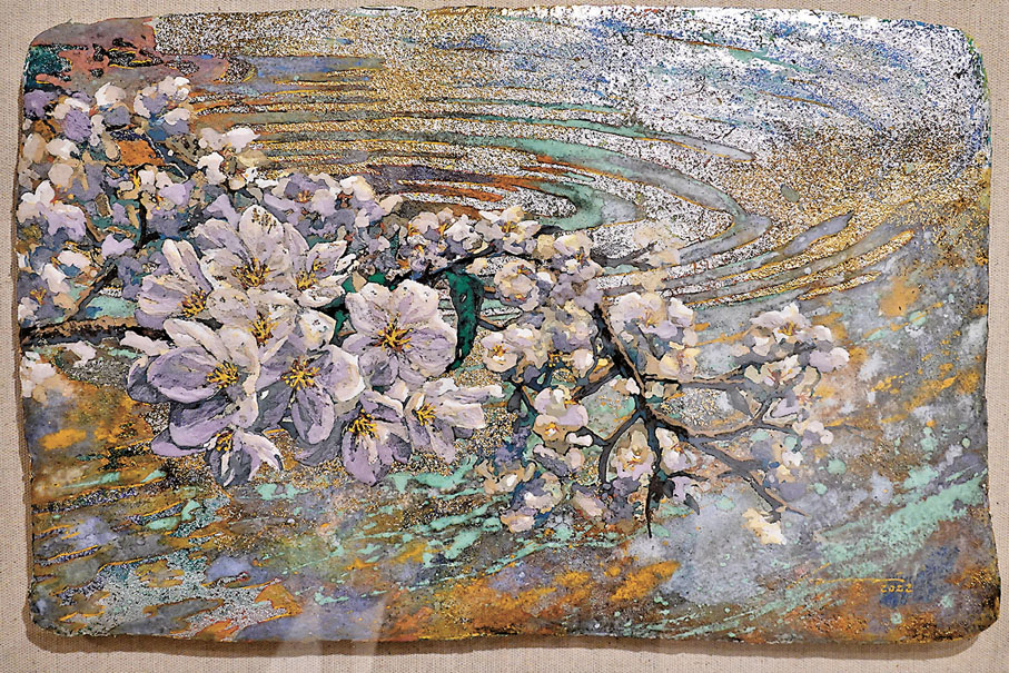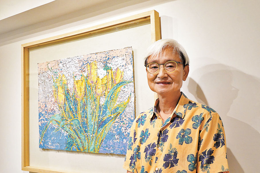 是次展覽展出鍾大富的最新岩彩力作,包括向梵谷致敬系列、刺青系列,以及水舞自然系列。藝術家早年畢業於香港中文大學藝術系,後前往日本留學學習版畫,同時也被岩彩這種特別的媒介吸引:「我最早的創作主題是花,因為那時在4月去到日本,又在4月畢業,櫻花盛開的場景令我記憶猶新。」鍾大富曾探索過不少創作主題,最近又開始畫花,他笑言是年紀大了的緣故。