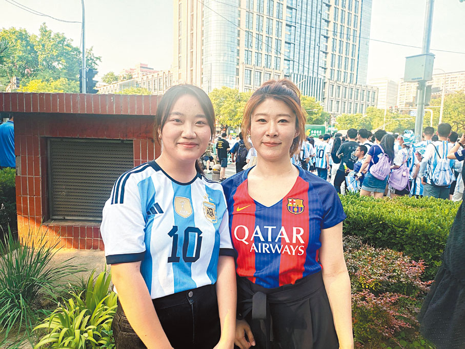本報記者看到,15日晚前往工體的地鐵裏、路上都是穿10號藍白球衣的球迷。來自新加坡的大二學生王梓藝是美斯的粉絲,她告訴記者:「這一次是特意從新加坡過來看美斯的,我想現場為他加油!」北京市民林小姐夫婦也是美斯的忠實球迷,放票的第一輪夫妻倆就輪流守在電腦前刷新票據。「美斯的經歷特別勵志,他在我心中永遠是排名第一的英雄,美斯加油!」