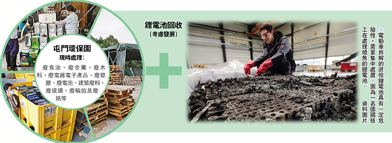 有屯門環保園商戶昨日向香港文匯報表示,贊成政府覓地擴建環保園。至於政府擬將現有環保園餘下土地招標作電動車鋰電池回收,他表示該園是合適的選址,而鋰電池回收也是未來環保大議題,「現在愈來愈多人改用電動車,日後將有大量電動車鋰電池被棄置。」