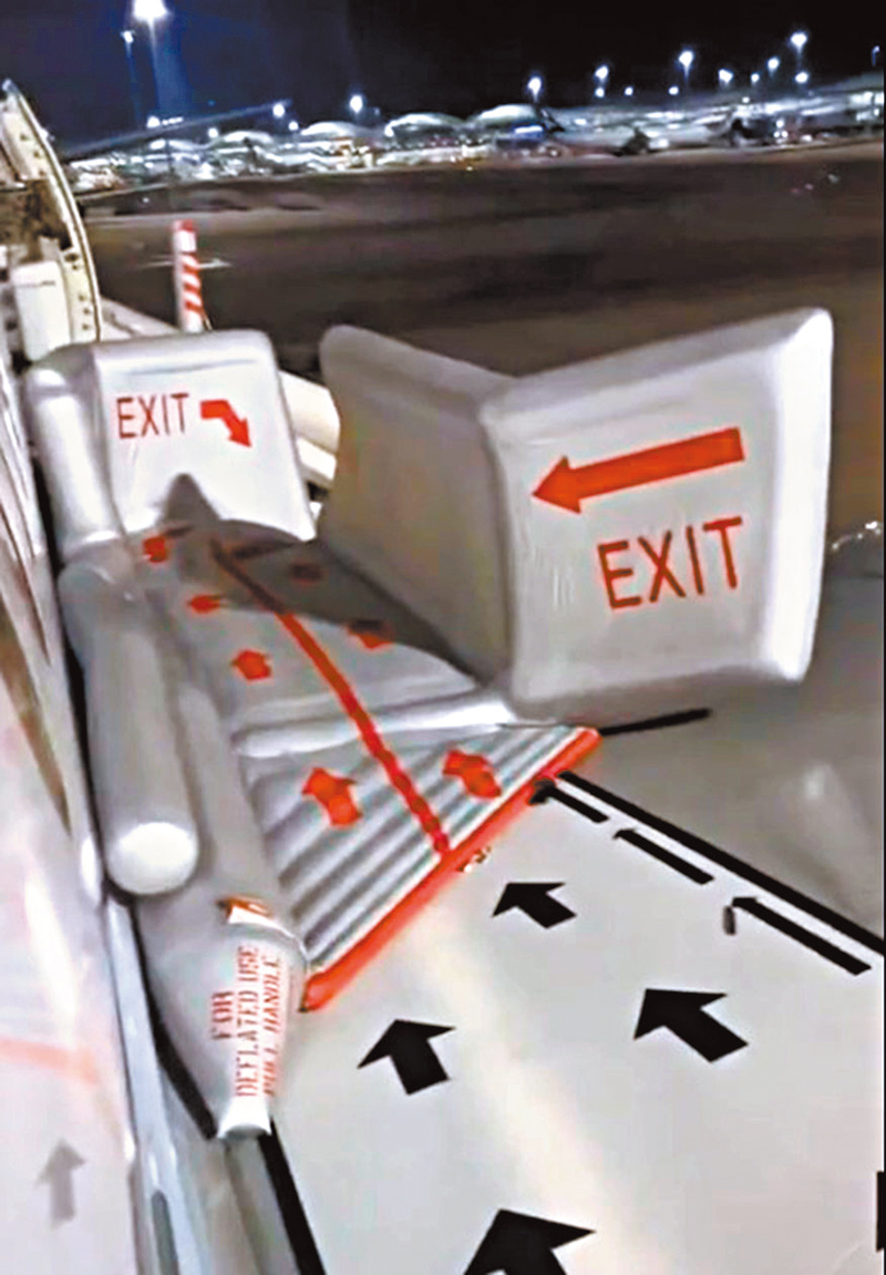 文章提到,曾經出現過滑梯被旅客的高跟鞋蹬破,令很多旅客滾到地下的情況,也有旅客因穿尼龍過膝襪,下滑時造成腿部與滑梯摩擦生熱熔化尼龍襪而灼傷。