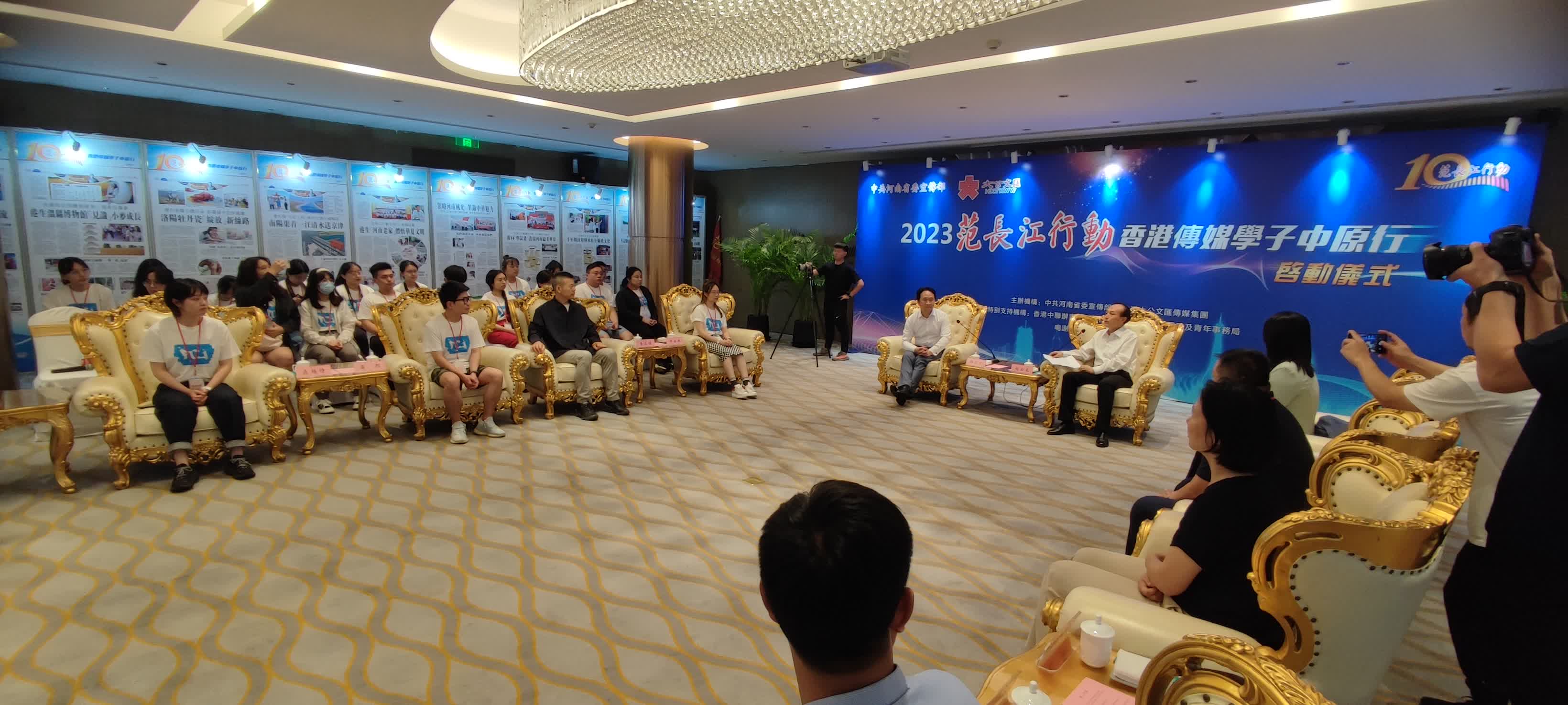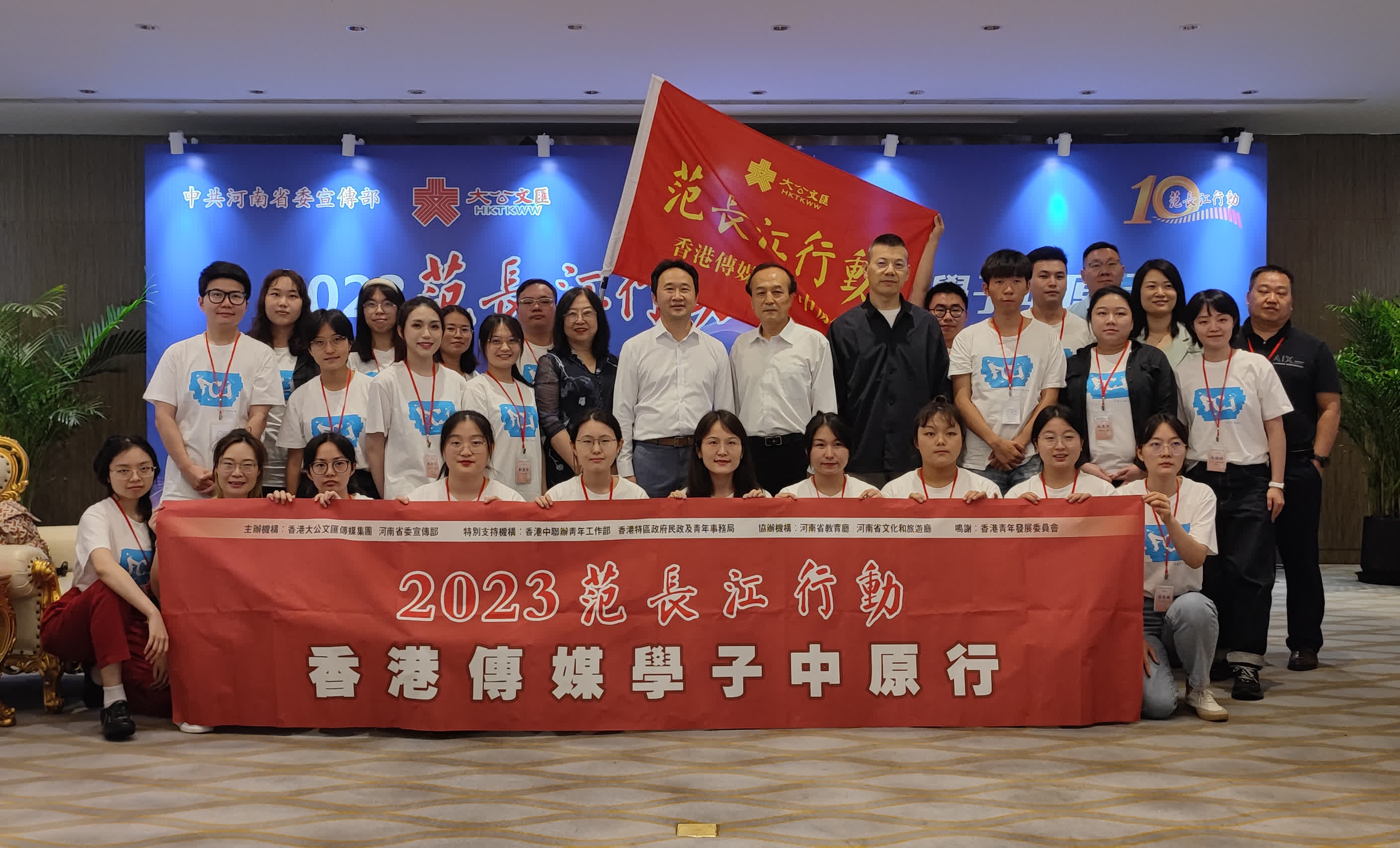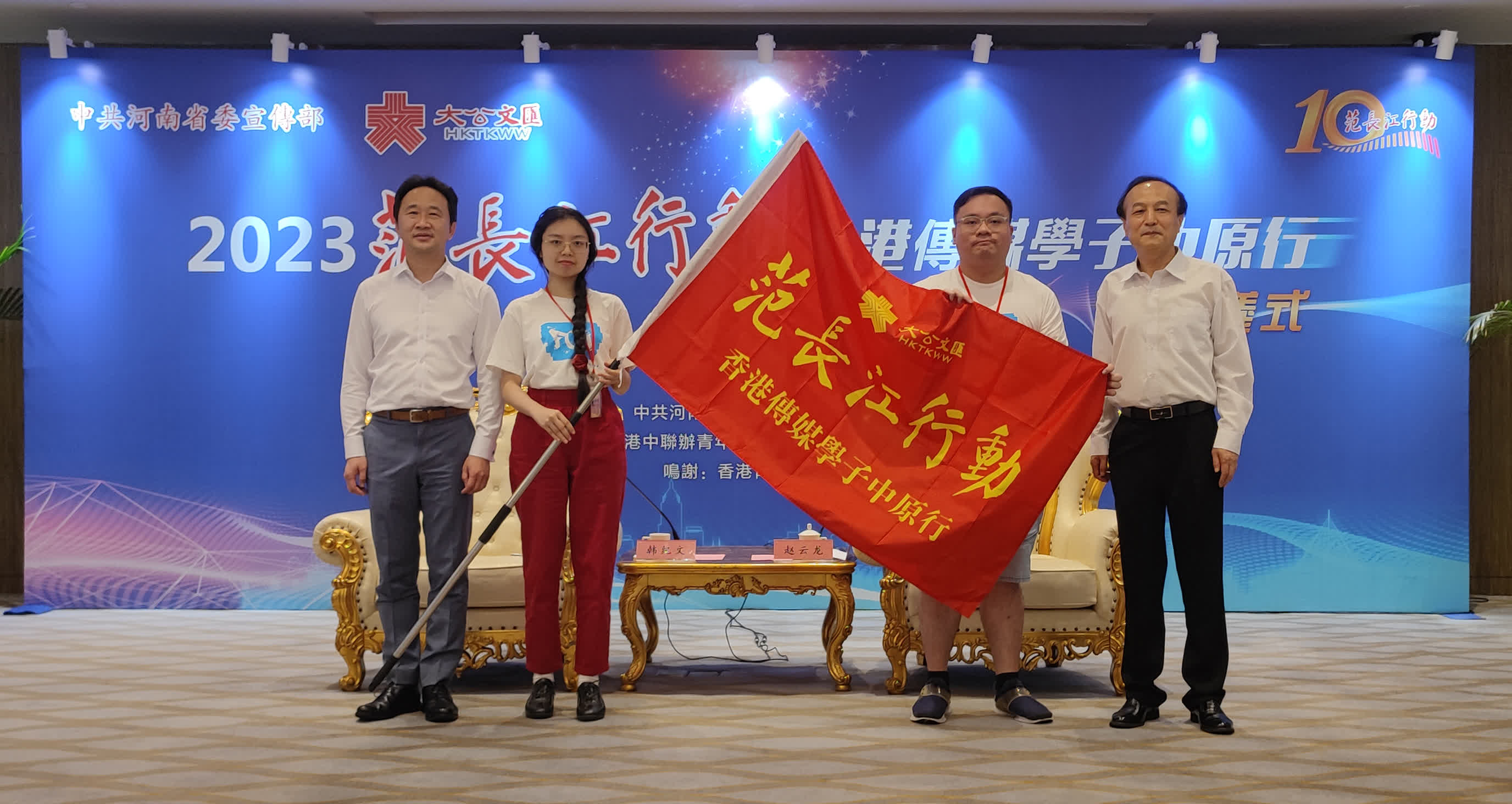 (香港文匯網記者 馮雷 河南報道)25日下午,主題為「行走河南 讀懂中國」的2023范長江行動——香港傳媒學子中原行在河南鄭州啟動。河南省委宣傳部副部長、一級巡視員趙雲龍與香港大公文匯傳媒集團執行總經理、大公報副總編輯、范長江同學會副主席韓紀文共同為採訪團授旗,宣布「2023范長江行動—香港傳媒學子中原行」活動啟動,亦勉勵香港、河南兩地學子在河南多走走、多看看,感悟河南貫徹新發展理念取得的新成效,感悟中國人民對美好生活的嚮往和追求,感悟中國式現代化的生機活力和美好未來。