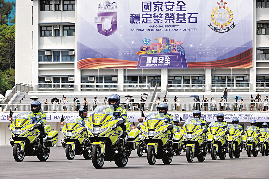 「危害國家安全的頭目相繼落網,大型街頭違法行為及激進暴力活動幾已絕跡,社會回復安寧。惟社會上仍潛藏國安風險,絕不能掉以輕心。」蕭澤頤強調,由治及興並不是一個口號,站在維護國家安全最前線的警隊,在任何崗位上的人員,都要時刻保持憂患意識,在各自的職能上履行維護國家安全的工作,繼續與全港市民攜手同行,建構好維護國家安全的銅牆鐵壁,共同守護香港這個家。