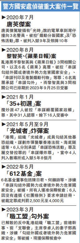 (香港文匯報記者 蕭景源 綜合報道)香港警務處國家安全處(國安處)成立近3年來,根據香港國安法堅定忠誠地履行維護國家安全的使命和職責,成為維護國家安全的神盾利劍。截至今年6月初,警方國安處共拘捕253人,當中155人和5間公司已被起訴,79人已被定罪,令正義得以伸張,法治得以彰顯。警務處處長蕭澤頤指出,多宗國安案件陸續確立案例,法庭作出了阻嚇性裁決,並肯定了香港國安法運用的法理依據,為國安法的實踐和未來推展維護國家安全的工作,奠定了堅實的基礎。