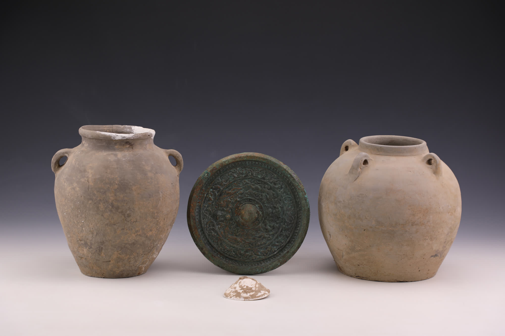 此次發現的唐宮人墓地位於三民村三民墓地,在該墓地已發掘的西晉至隋唐時期的280餘座中小型墓葬中,宮人墓共計57座,分為9排,各墓之間無打破關係。墓葬皆屬直線形土洞墓,主要由墓道和墓室組成,水平殘長約3至7米。墓道為斜坡底,墓室空間狹促低矮,僅可容棺。墓葬均為單人葬,墓主仰身直肢葬,頭向南。隨葬品以陶罐、壺為主,部分墓葬見有貝殼、銅鏡、玉石飾品和黛板等女性妝扮用品。