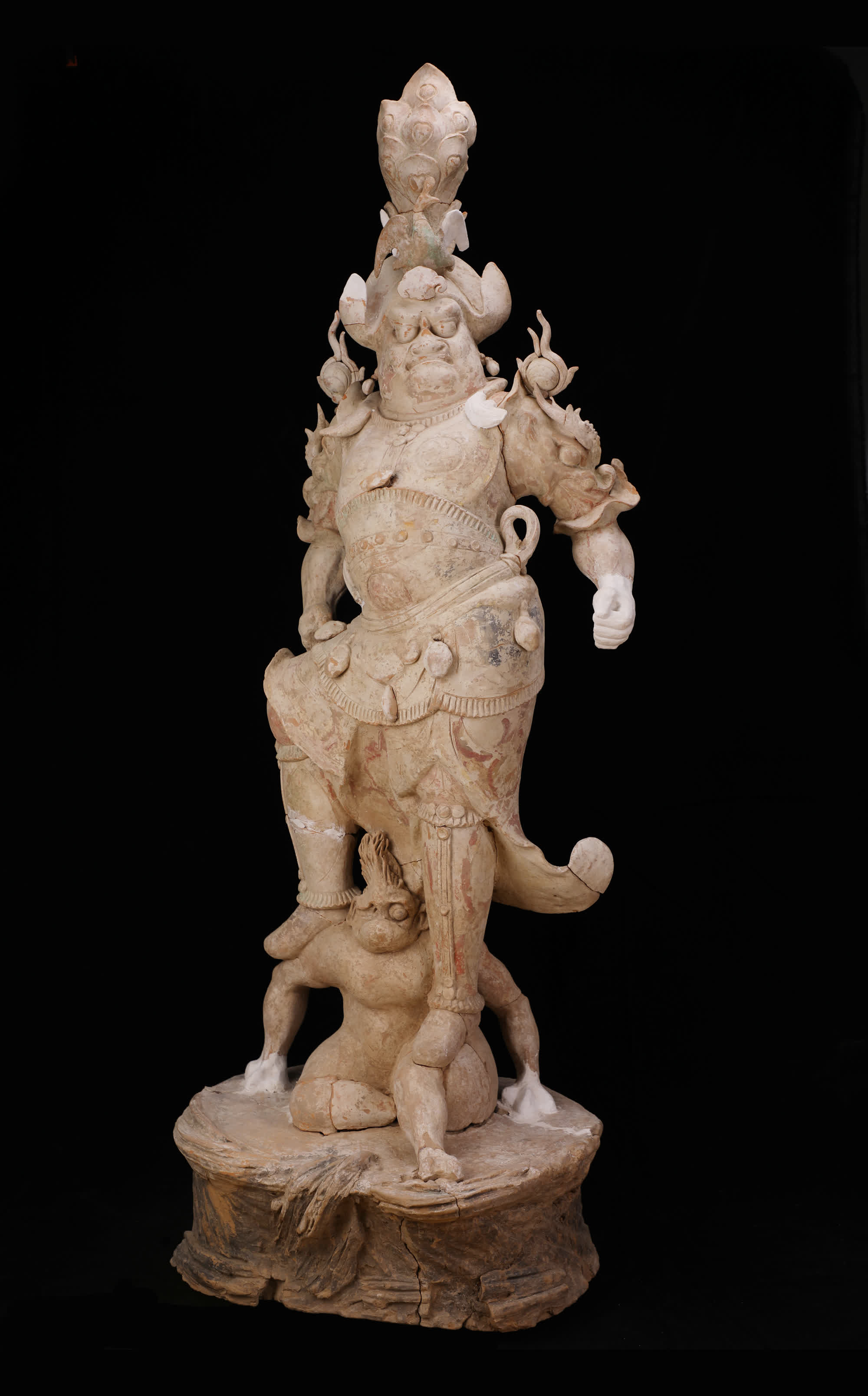 出土隨葬品43件(組),主要以彩繪陶俑為主,其中天王俑腳踏5只小鬼,造型複雜,胡人俑肌肉緊繃,齒舌畢現,堪稱精品。此外,值得注意的是,關中地區開元前期壁畫墓發現極少,學界對於這一時期壁畫布局不甚了解,該墓部分壁畫內容同期少見,分布位置特殊,體現出唐玄宗規範喪葬制度之前壁畫存在的多樣性,為唐神龍至開元晚期唐墓壁畫的演變提供了實證資料。