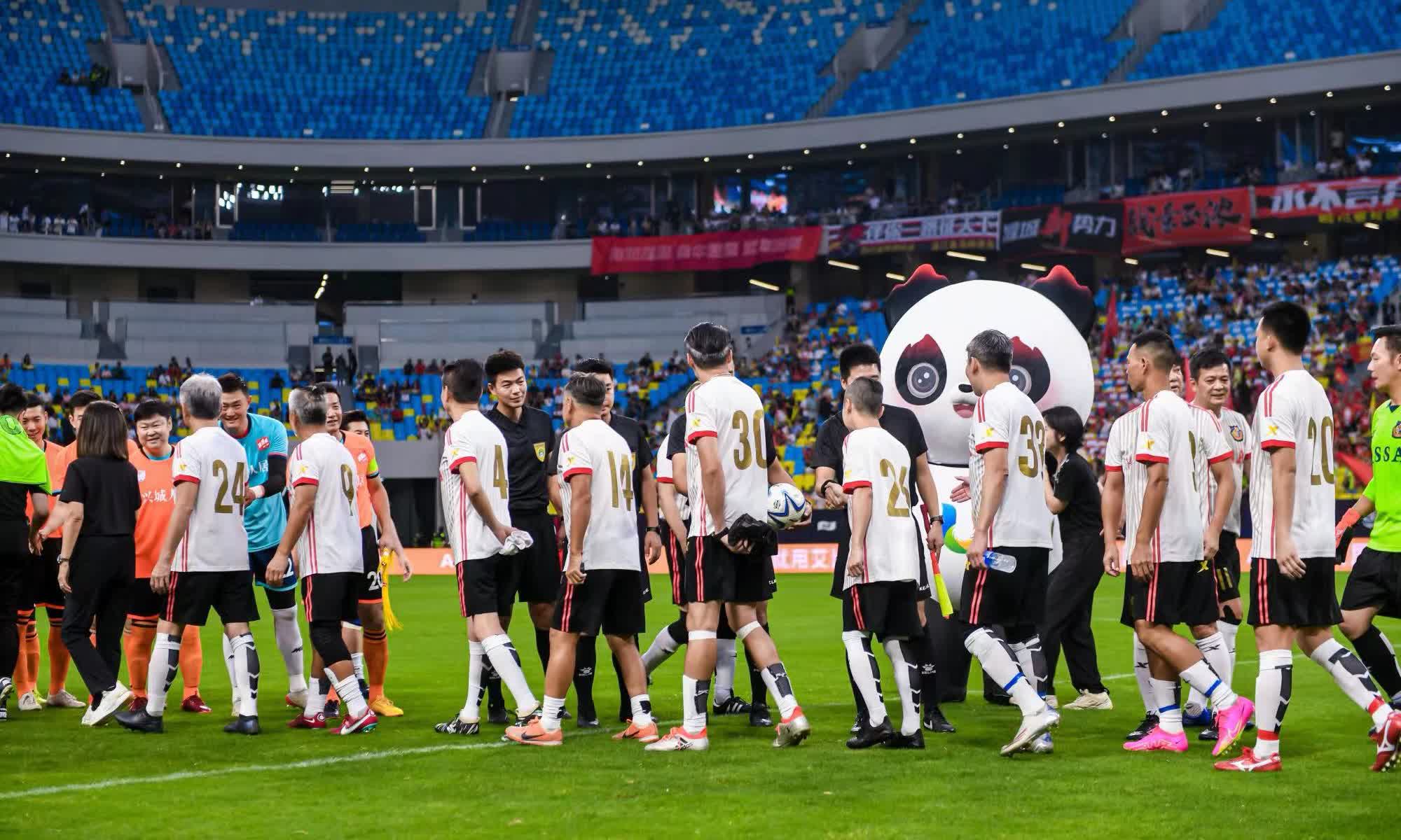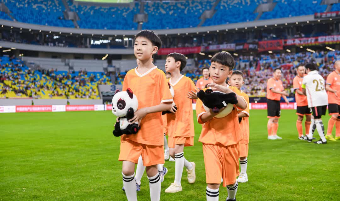 作為成都大運會開幕倒計時30天的重要活動之一,當晚的入場儀式前,成都大運會吉祥物「蓉寶」率先踏上綠茵場,隨後雙方首發球員也在「蓉寶」的引領下,一手拿着「蓉寶」的毛絨玩偶,一手牽着球童列隊入場,並在球場上集體高舉「蓉寶」向觀眾致意。