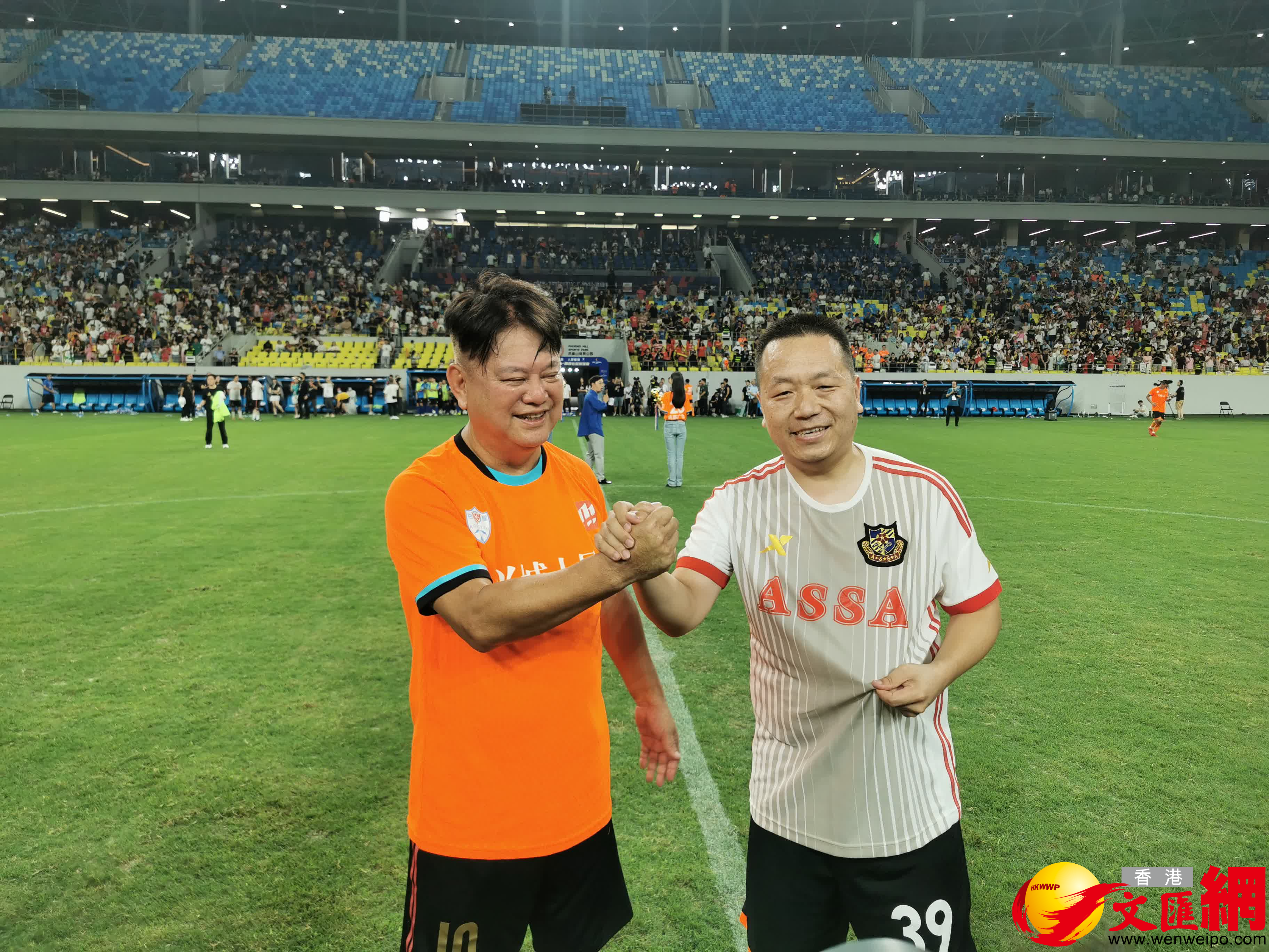 綠茵場上,穿着白色球衣的是香港明星足球隊,已經有36年的歷史。1993年,香港明星足球隊首次來到成都比賽和義演,引起全城轟動;2008年和2018年,香港明星足球隊也曾到成都參與公益活動。是次來蓉的不僅有譚詠麟、陳百祥、黃日華、李子雄、張兆輝等演藝界明星,還有賴啟卓、劉志強等香港足球名宿押陣,這也是球隊在疫情之後首次集結亮相。