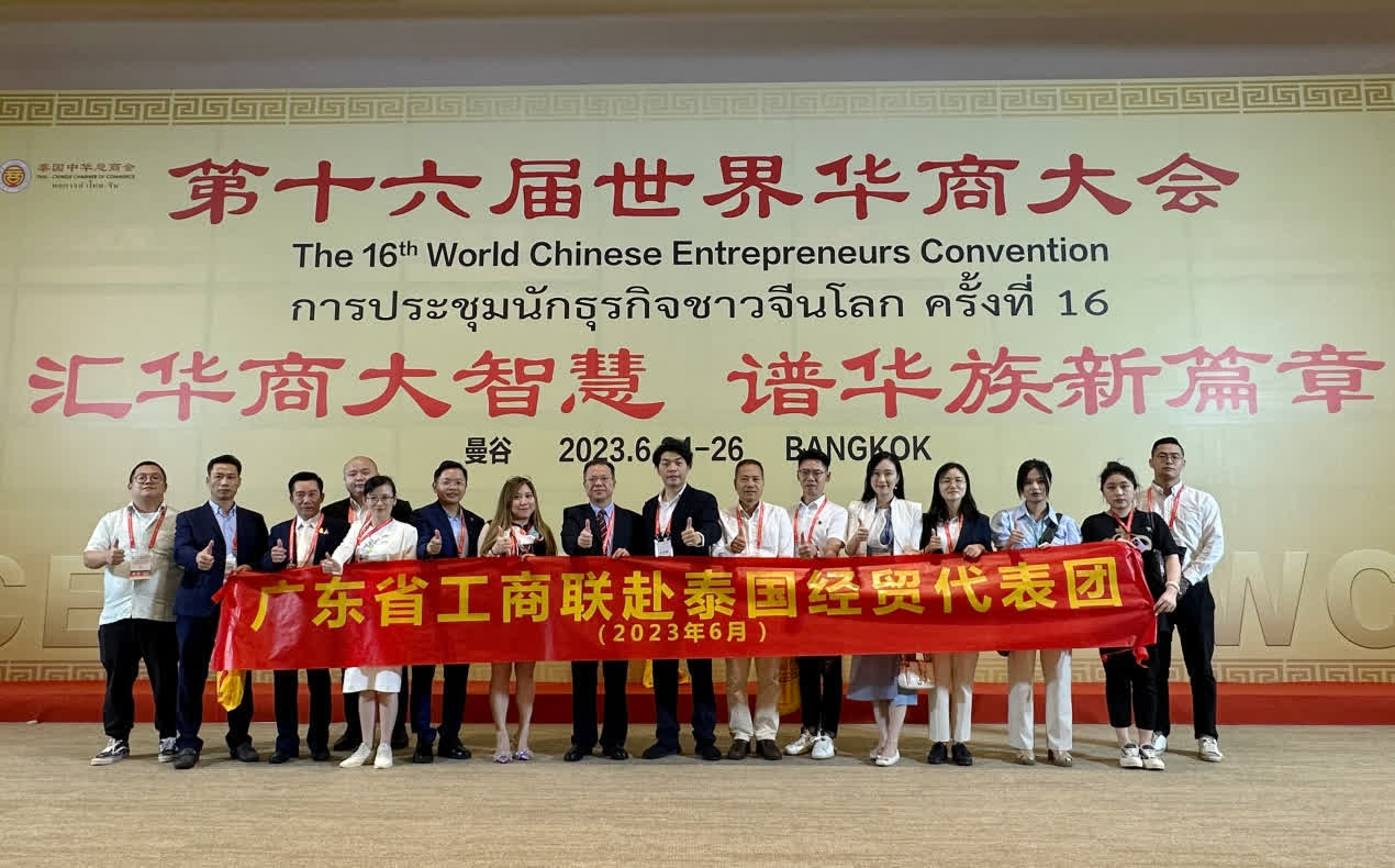 近日,第十六屆世界華商大會在泰國首都曼谷舉行,吸引了來自50多個國家和地區的3000多名華商代表以及200多家世界知名企業的參與。本次大會以「匯華商大智慧,譜華族新篇章」為主題,旨在共同探討新冠疫情後世界華商所面臨的全球發展機遇。廣東省工商聯(總商會)副主席盧小周、常委吳學明及陳丹丹率團十多人參加。