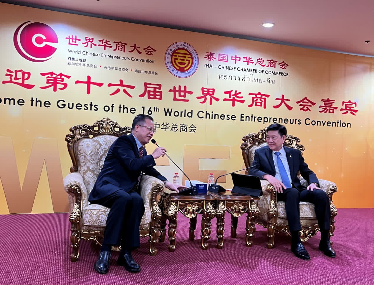 泰國副總理兼商業部長朱林在致辭時強調,中國作為世界第二大經濟體,在全球經濟中扮演着至關重要的角色。廣大華商在促進所在國經濟發展中發揮着重要作用,同時也成為中國與各國商界間的重要橋樑和紐帶。