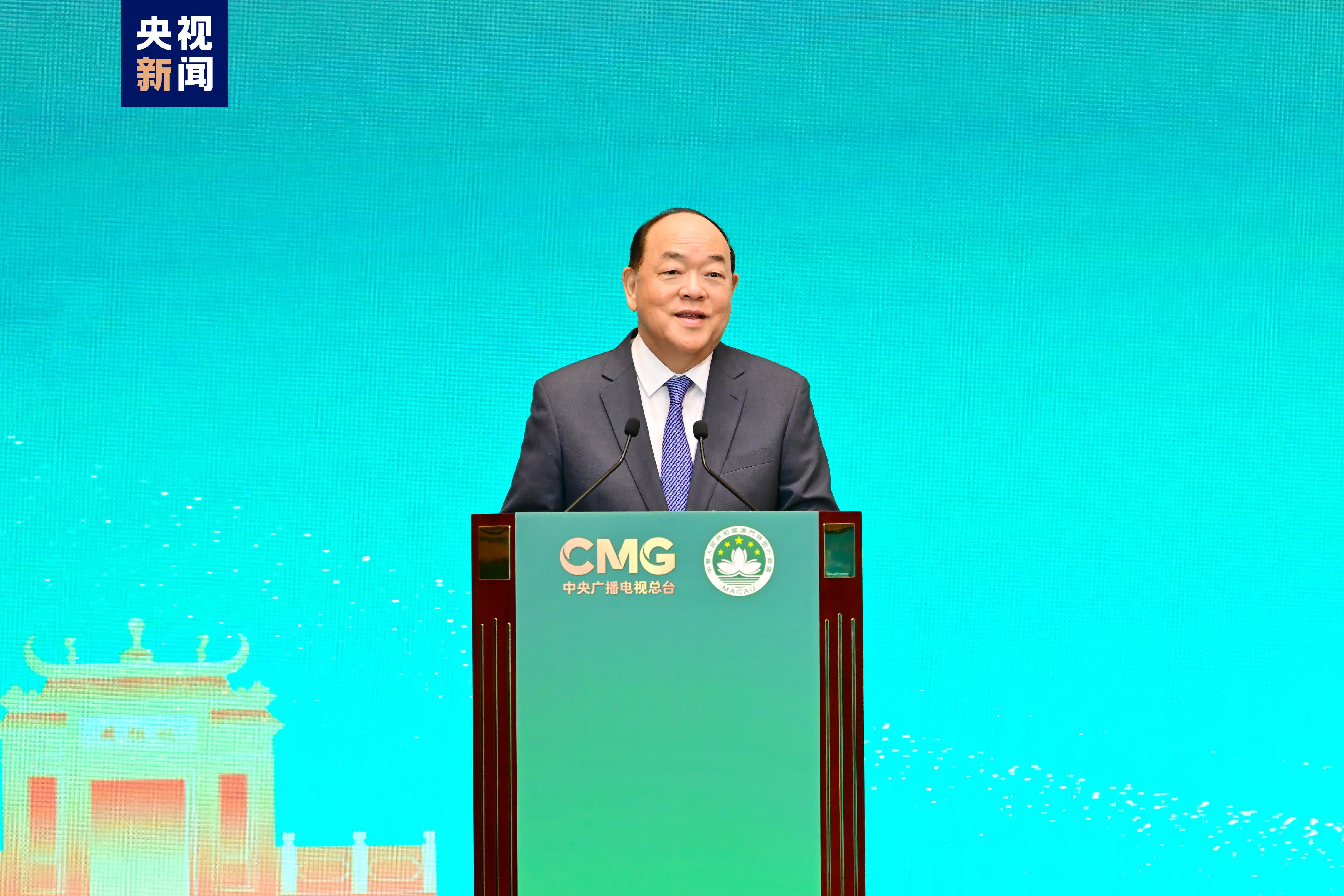 澳門特別行政區行政長官賀一誠,中宣部副部長、中央廣播電視總台台長慎海雄在啟動儀式上致辭,中央人民政府駐澳門特別行政區聯絡辦公室主任鄭新聰出席。