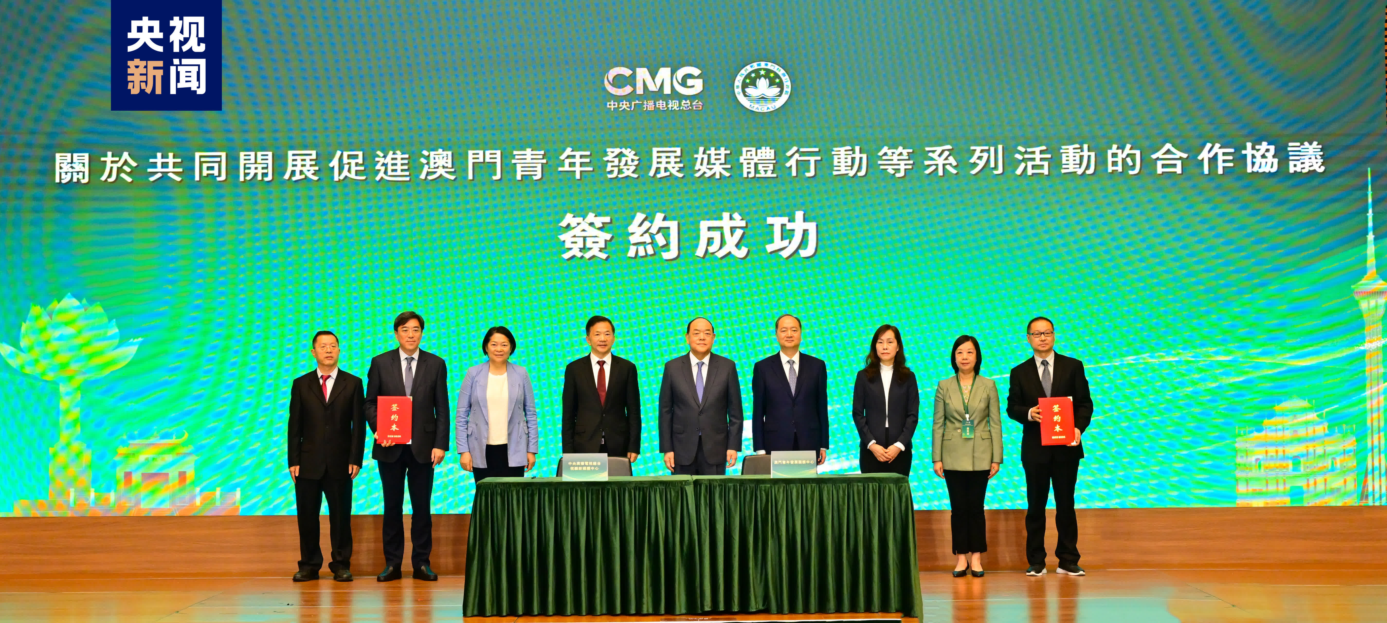 儀式上,中央廣播電視總台編務會議成員范昀和澳門青年發展服務中心總幹事黃永曦代表雙方簽署了《關於共同開展促進澳門青年發展媒體行動等系列活動的合作協議》。根據協議,中央廣播電視總台視聽新媒體中心和澳門青年發展服務中心將充分利用各自資源優勢,共同做好「青春知行」澳門青年職業發展關切計劃、就業創業能力培訓計劃、內地高新產業研學實踐計劃等系列媒體活動,助力澳門青年深度觀察、親身感受偉大祖國的發展變化,增進澳門與內地青年的雙向交流。