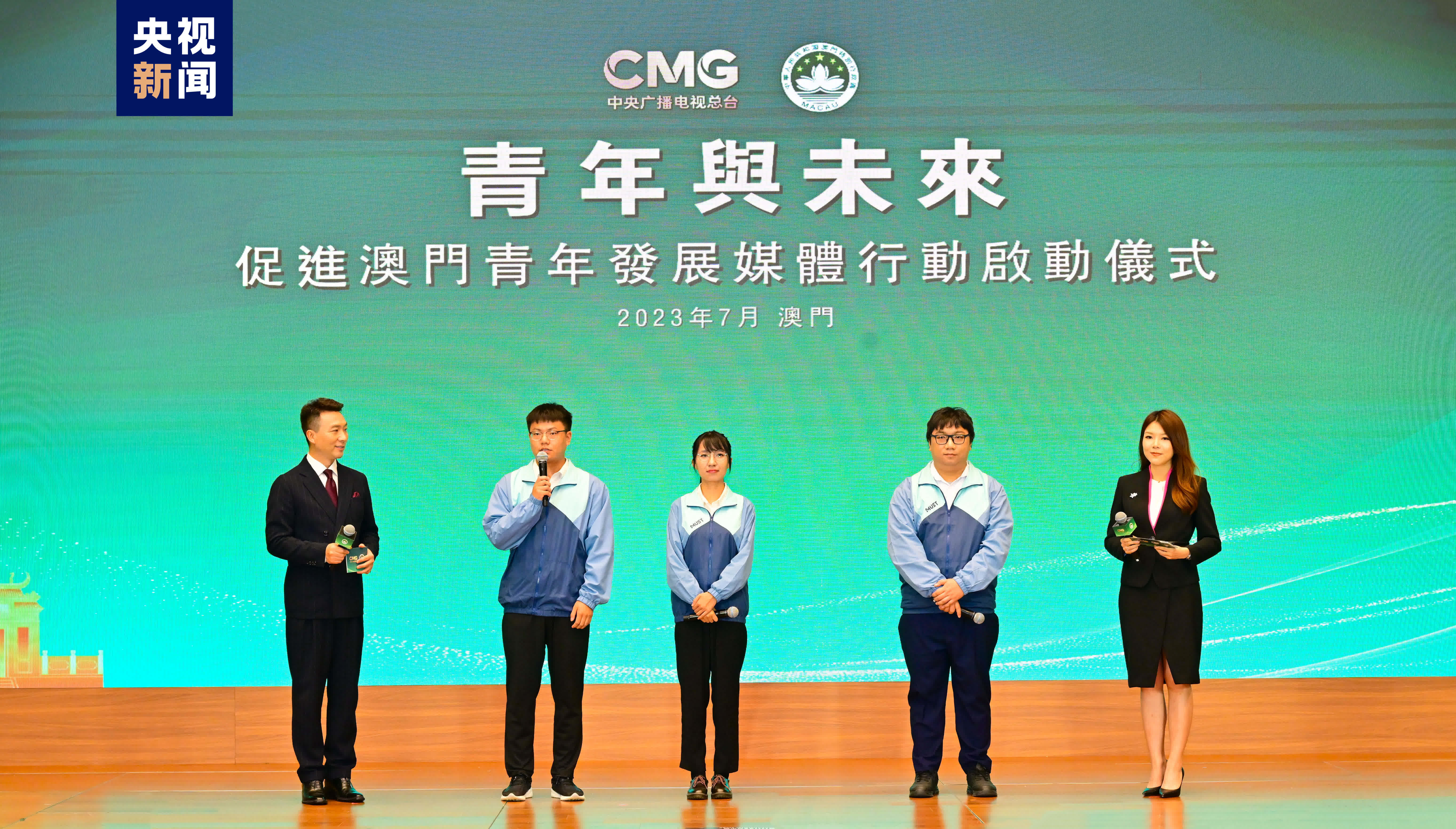 中央人民政府駐澳門特別行政區聯絡辦公室副主任嚴植嬋、澳門特別行政區政府社會文化司司長歐陽瑜、國投人力資源服務有限公司董事長孟書豪、澳門廣播電視股份有限公司執行委員會主席羅崇雯、中央人民政府駐澳門特別行政區聯絡辦公室宣傳文化部部長萬速成,以及澳門特別行政區政府、中央人民政府駐澳門特別行政區聯絡辦公室、中央廣播電視總台相關部門負責人,澳門各界和青年學生代表等參加活動。