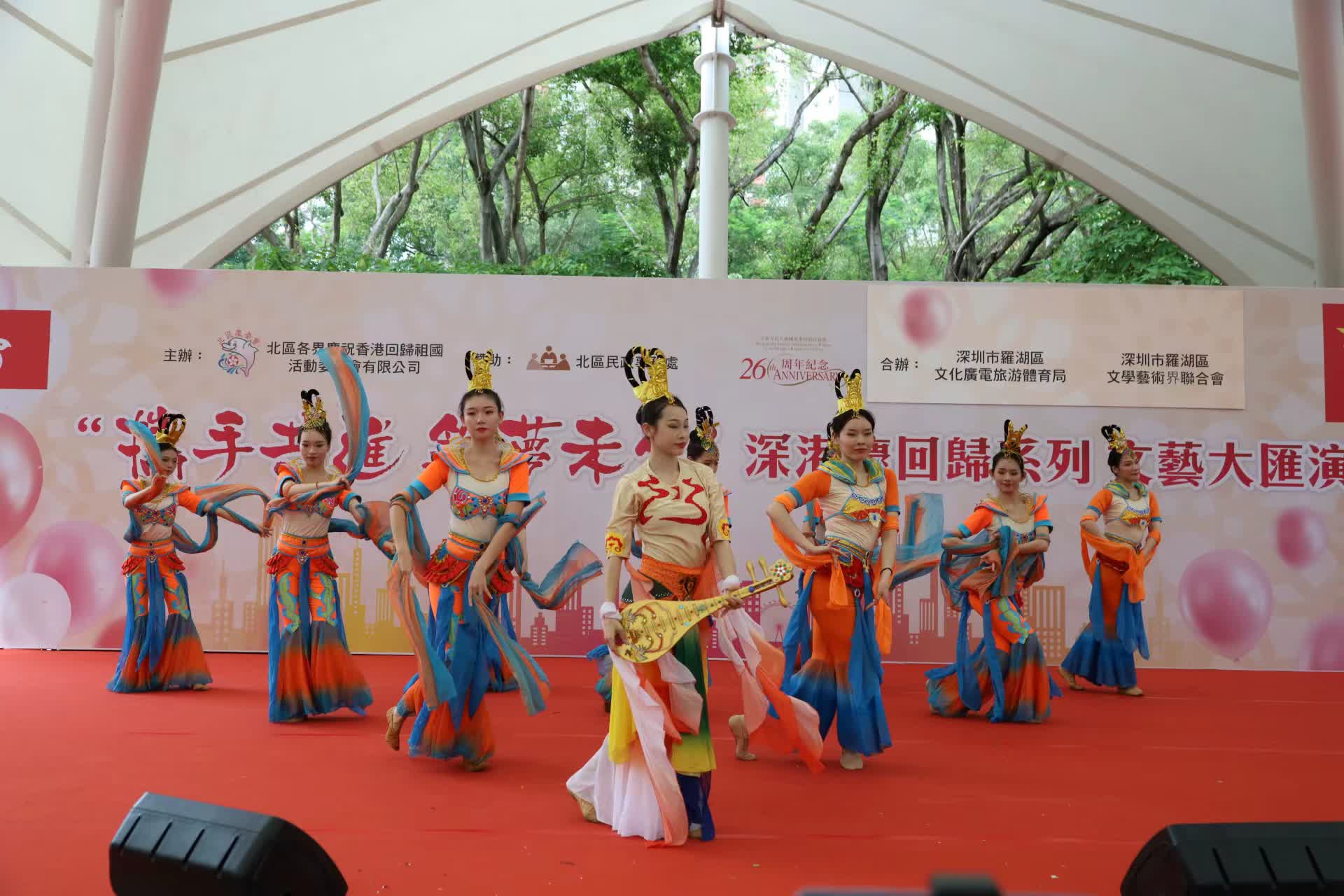 據悉,本次演出由深圳市文聯和香港文聯指導,香港北區各界慶祝香港回歸祖國活動委員會、香港北區民政事務處、羅湖區文化廣電旅遊體育局、羅湖區文聯共同主辦,深港兩地文藝社團及藝術家通過歌舞、雜技、京劇等形式,共同慶祝香港回歸26周年,表達對香港的美好祝福。500餘名文藝社團代表和普通市民參加活動,現場還設置了趣味遊戲攤位,氣氛十分熱烈。