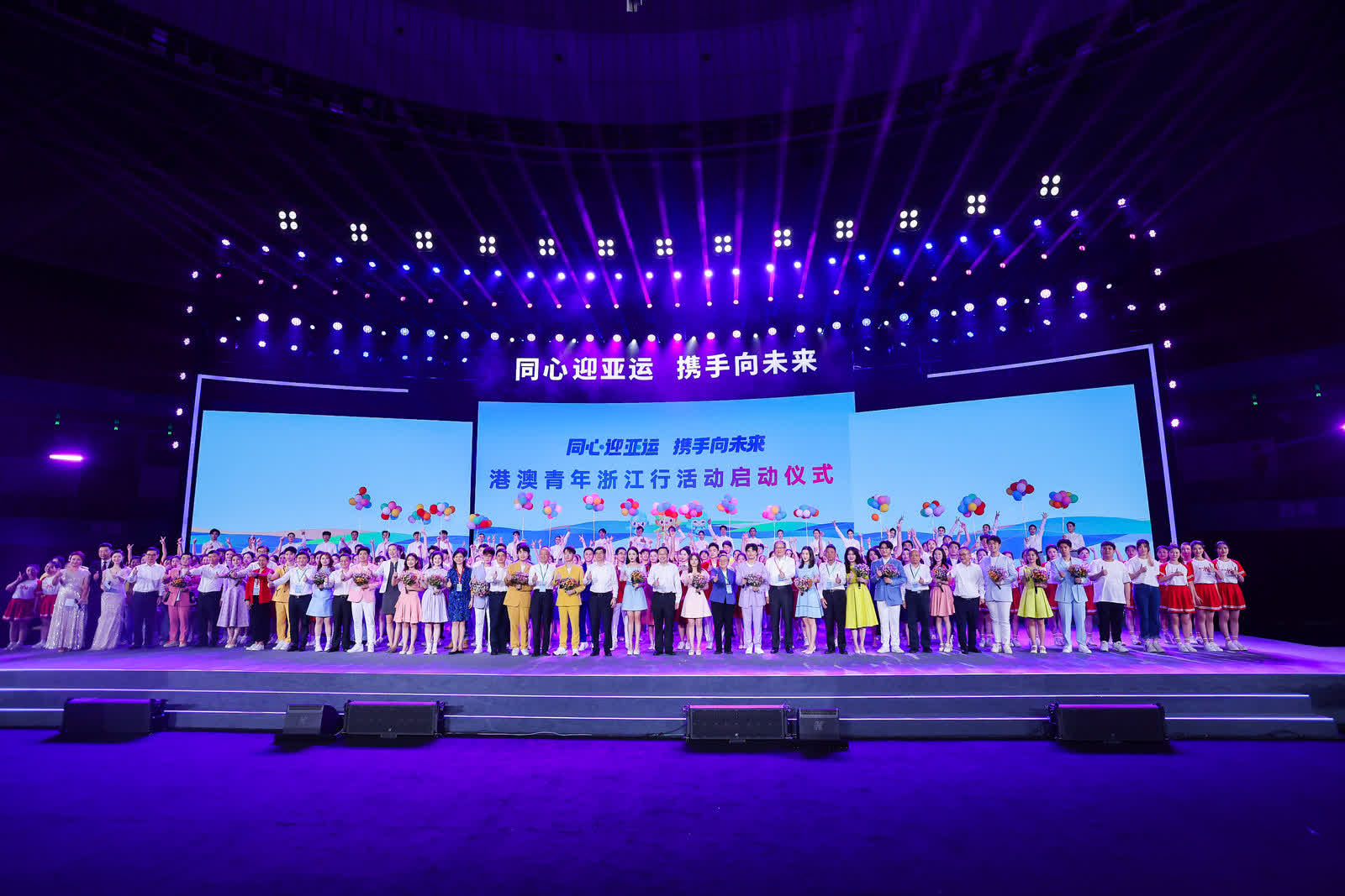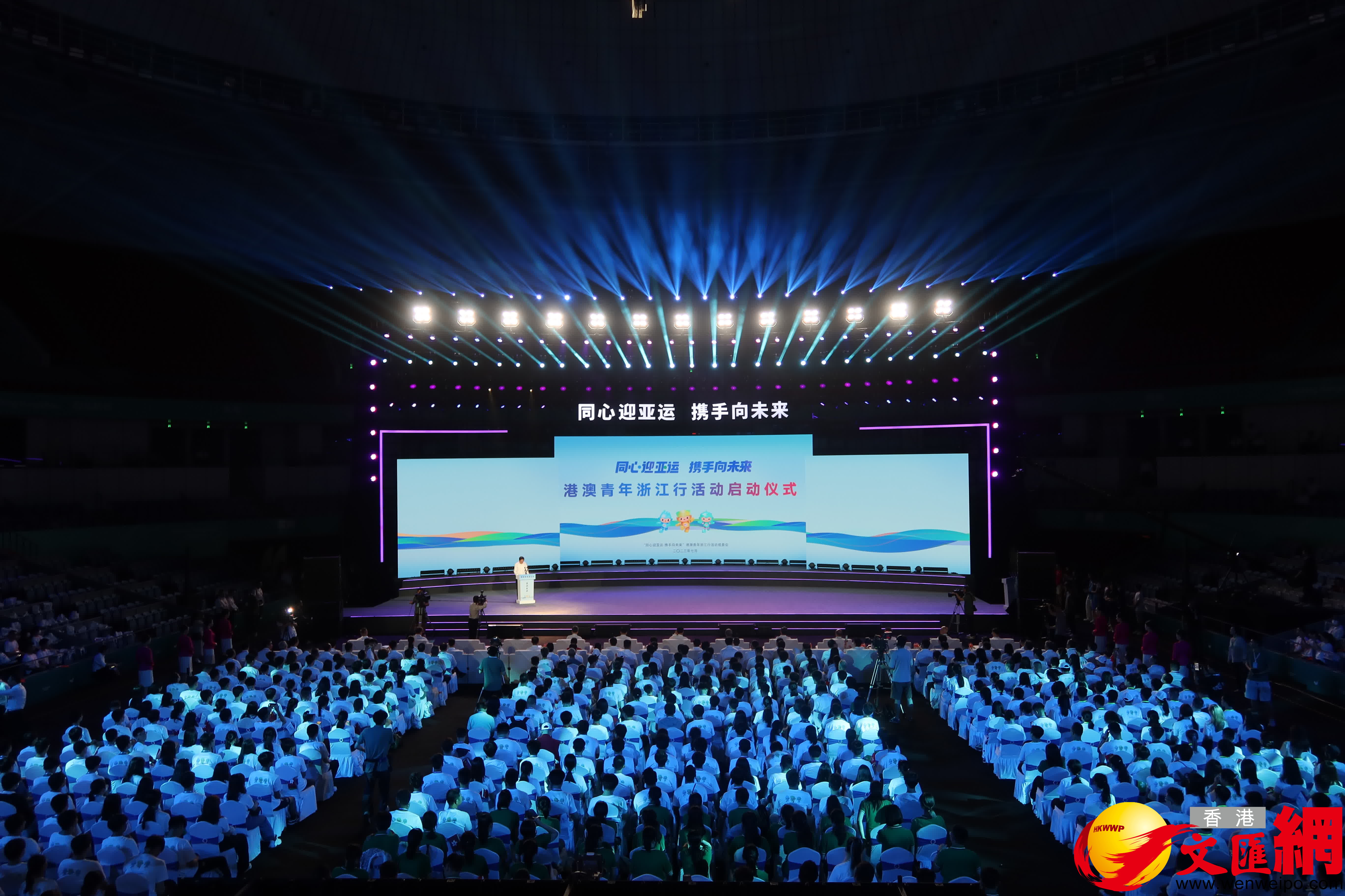 啟動儀式不僅通過音樂說唱、情景舞蹈等形式,向港澳青年介紹了浙江地域特色、發展成就等,還生動再現了杭州亞運會火種採集儀式上良渚之光點燃亞運之火的盛況,19名採火使者來到現場,重溫亞運採火經典瞬間。奧運冠軍楊倩、王懿律和傅園慧也來到現場與港澳青年進行互動,他們不僅講述了自己努力拚搏的經歷和感受,同時鼓勵現場青年為祖國富強而奮鬥。