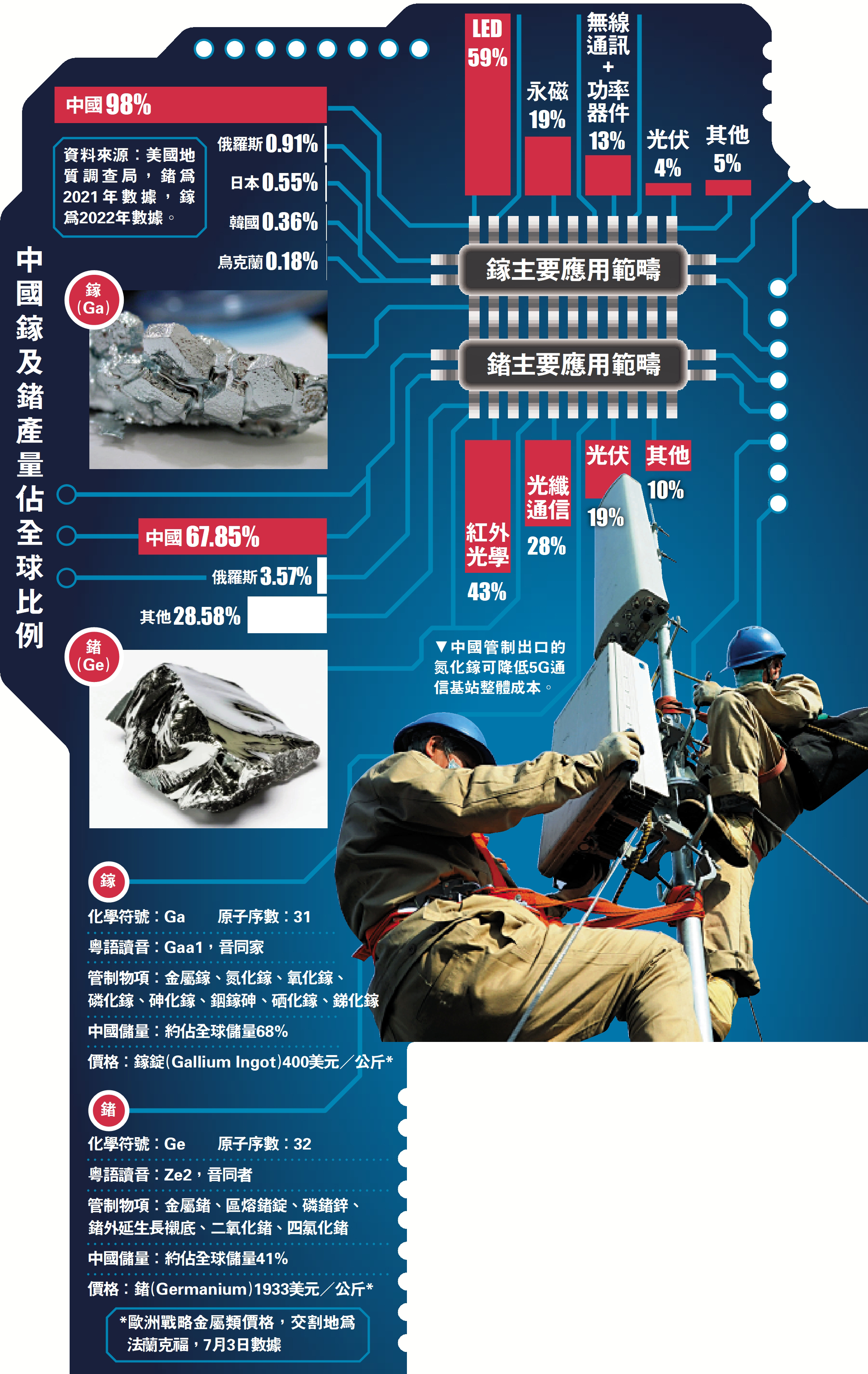 (大公報記者 張寶峰 北京報道)中國商務部、海關總署3日發布《關於對鎵、鍺相關物項實施出口管制的公告》,自8月1日起對鎵、鍺相關物項實施出口管制。鎵和鍺是芯片製造的關鍵元素,外界普遍認為,這是中國回擊美國的半導體限制的最新舉措。中國國際經濟交流中心副理事長、商務部原副部長魏建國在接受訪問時表示,這一舉措是經過深思熟慮的重拳出擊,不僅能打得某些國家慌,還會打得某些國家疼,「如果對華高技術限制繼續升級,中國的反制措施也會進一步升級。」
