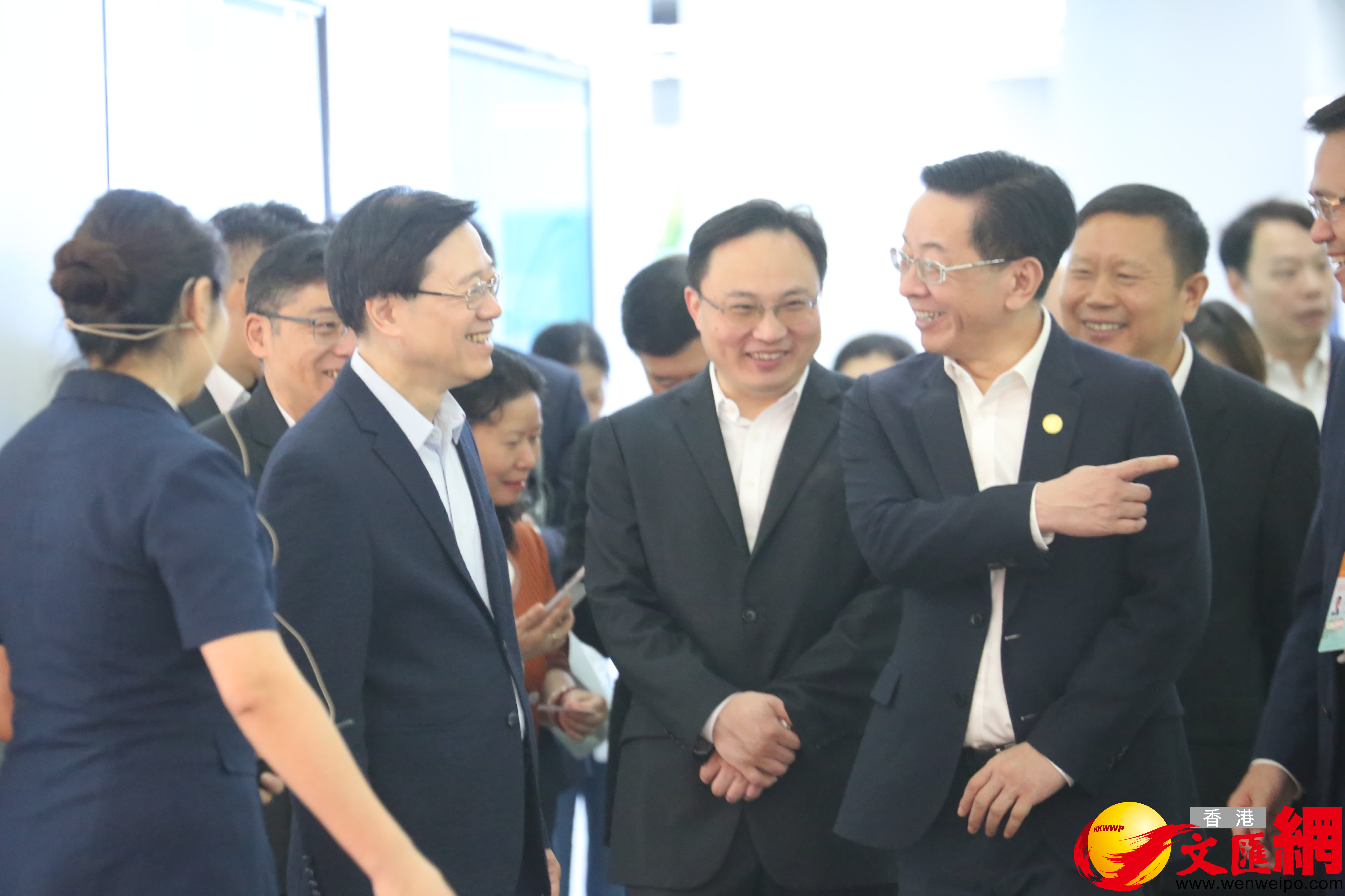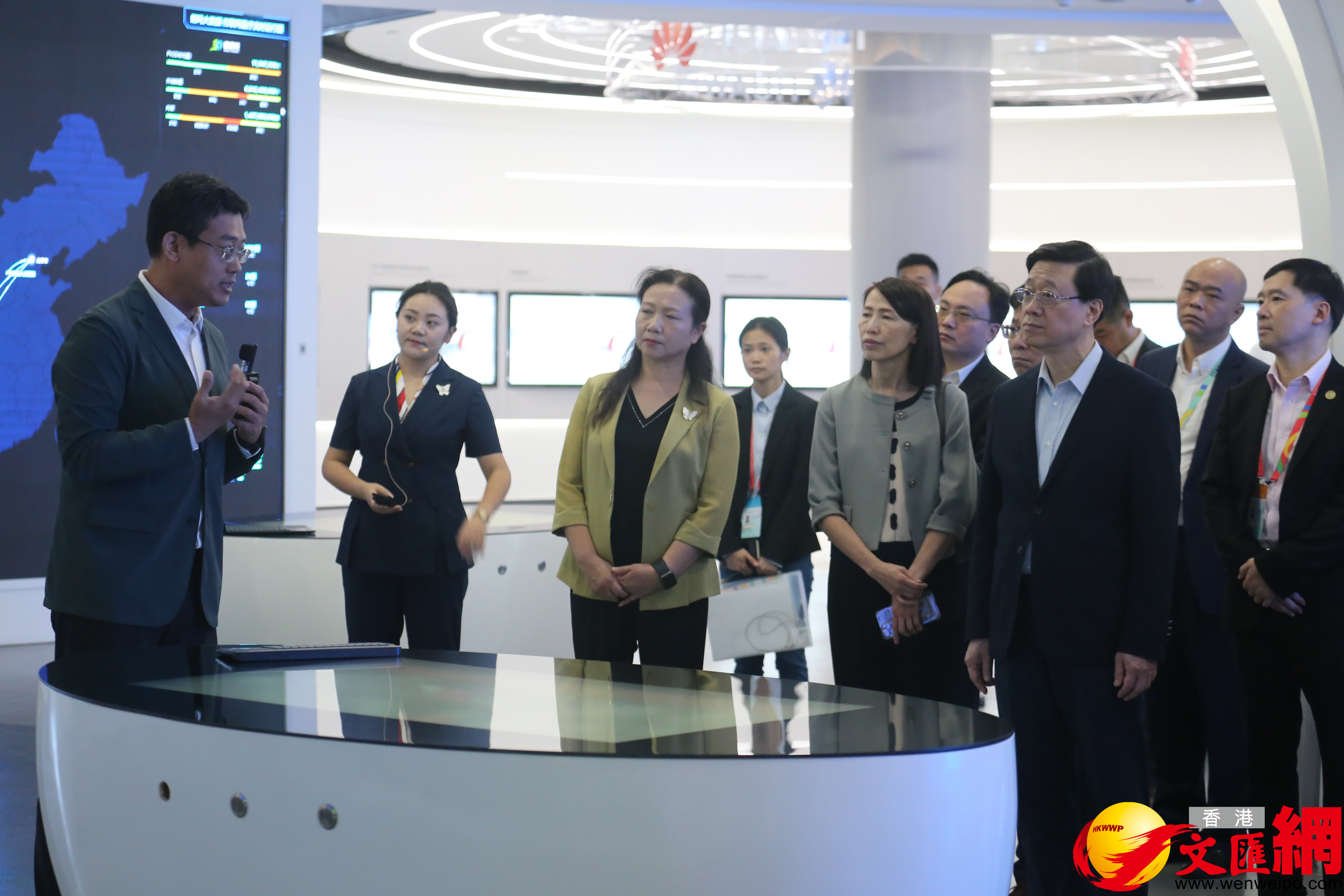 (香港文匯網記者 周亞明)「希望你們越搞越好」,今天(6日)上午九點一刻許,前來出席泛珠三角區域合作行政首長聯席會議的香港特首李家超一行,在中共貴州省委常委、宣傳部長盧雍政等貴州省市領導的陪同下,興致勃勃地參訪位於貴陽市觀山湖區長嶺南路18號的國家大數據(貴州)綜合試驗區交流體驗中心。李家超一行邊走邊看,不時駐足,聽取介紹和講解。在滿幫集團展示區域,李家超發出由衷讚嘆,並勉勵「希望你們越搞越好」。