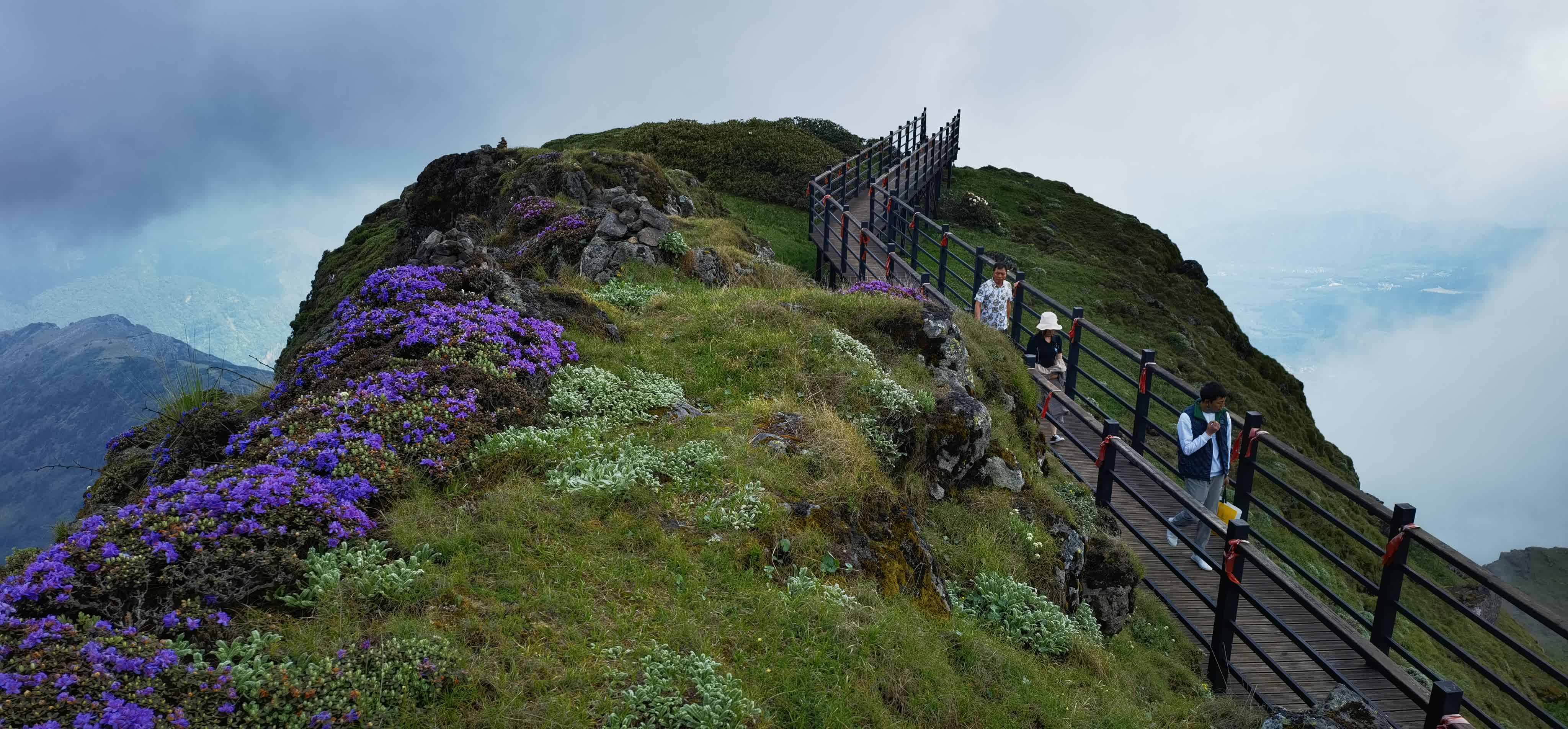 轎子山是國家級自然保護區,也是國家AAAA級旅遊景區。這裏是中國緯度最低的季節性雪山,有「南國雪山」之稱,有着「冬春觀冰雪、夏賞花、秋遊水」的季節性旅遊資源,雲海、佛光、日出、冰雪及杜鵑花被譽為轎子山「五絕」。近幾日,轎子山山中溪流飛瀉,漫山的杜鵑花爭奇鬥豔,17~18度的平均氣溫,讓遊客直呼「涼爽」。