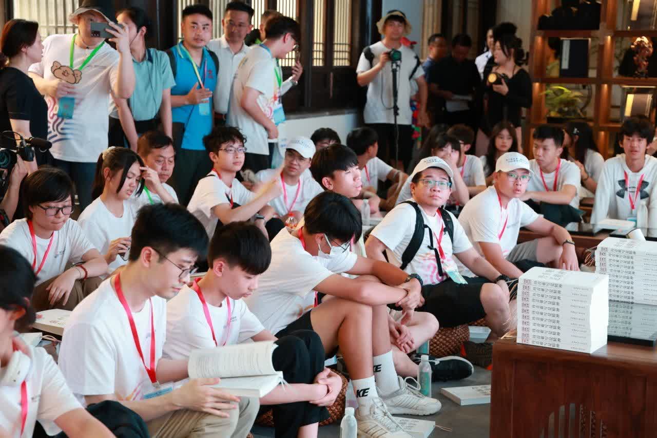 《典籍裏的中國》陳列館品讀閣,古樸典雅,書香滿室。參加活動的青年靜坐蒲團,翻開《丹青難寫是精神:CMG觀察文萃》一書第145頁,認真讀着由總台台長慎海雄撰寫的《我們為什麼要策劃〈典籍裏的中國〉》。他們時而探討,時而深思,共沐書香。