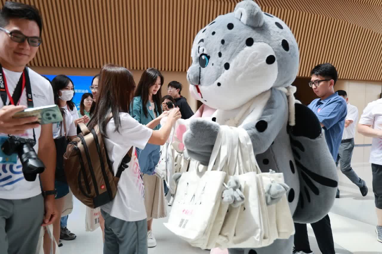 「豹豹」雨傘當選為最受喜愛的文創禮物,「太可愛了」「又好看又實用」「這邊下雨比較多,正好可以用」……香港青年蘇潁桐對記者說,她非常喜歡「豹豹」和「象象」,「好可愛,但是我覺得裏面的人肯定很熱,可不可以給他一點冷氣?」當可愛的總台吉祥物與可愛的青年相遇,總有一種相見恨晚的感覺。