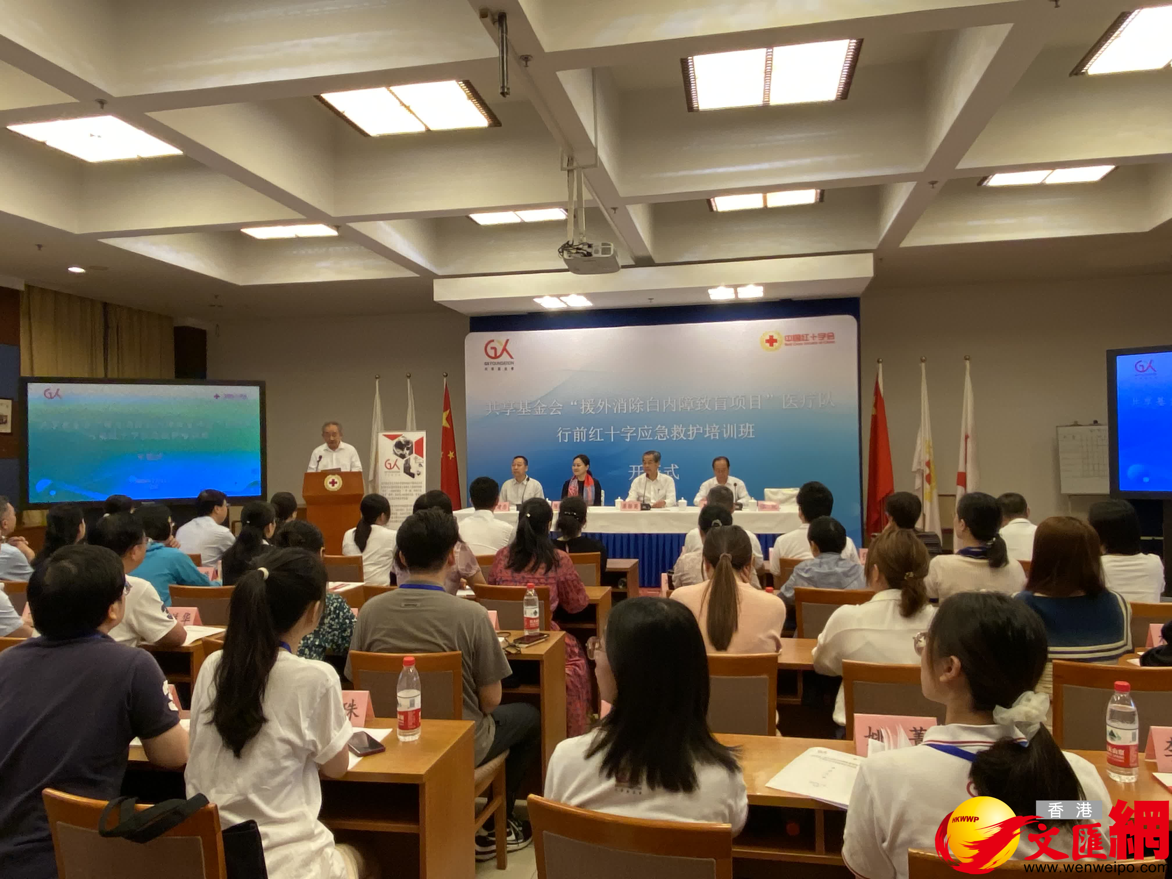 (香港文匯網記者 馬靜 北京報道)共享基金會於去年9月起開展「消除白內障致盲項目」,至今已在老撾、柬埔寨及東非吉布提完成近3000例免費白內障手術。基金會「援外消除白內障致盲項目」醫療隊行前紅十字應急救護培訓班12日在京開班,四支內地援外醫療隊參加培訓課程,並將獲得國際認證的急救資格。共享基金會主席、全國政協副主席梁振英在開班致辭中介紹,今年秋季,首批醫療隊將遠赴西非的毛里塔尼亞、西非塞內加爾開展手術,為更多當地民眾帶去光明。