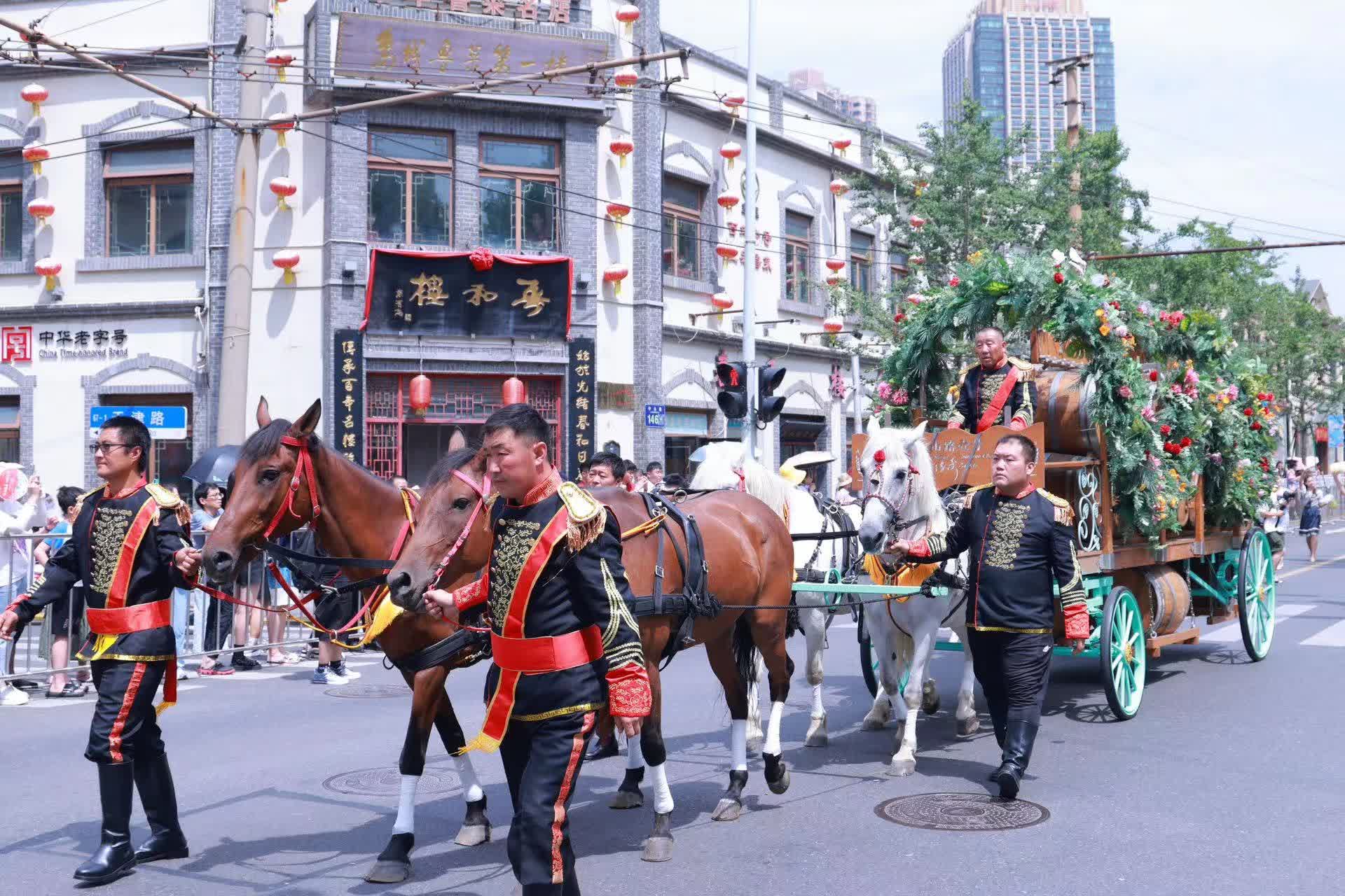在青島啤酒120周年華誕到來之際,於百年中山路看一場馬車巡遊是什麼樣的感受?7月15日上午,長約40米的巡遊隊伍,集結9匹歐洲進口百萬級馬匹以及騎士、傳奇NPC、歡動人偶等,共同護送馬車上連接古今的啤酒佳釀,從有悠久歷史的中山路出發。
