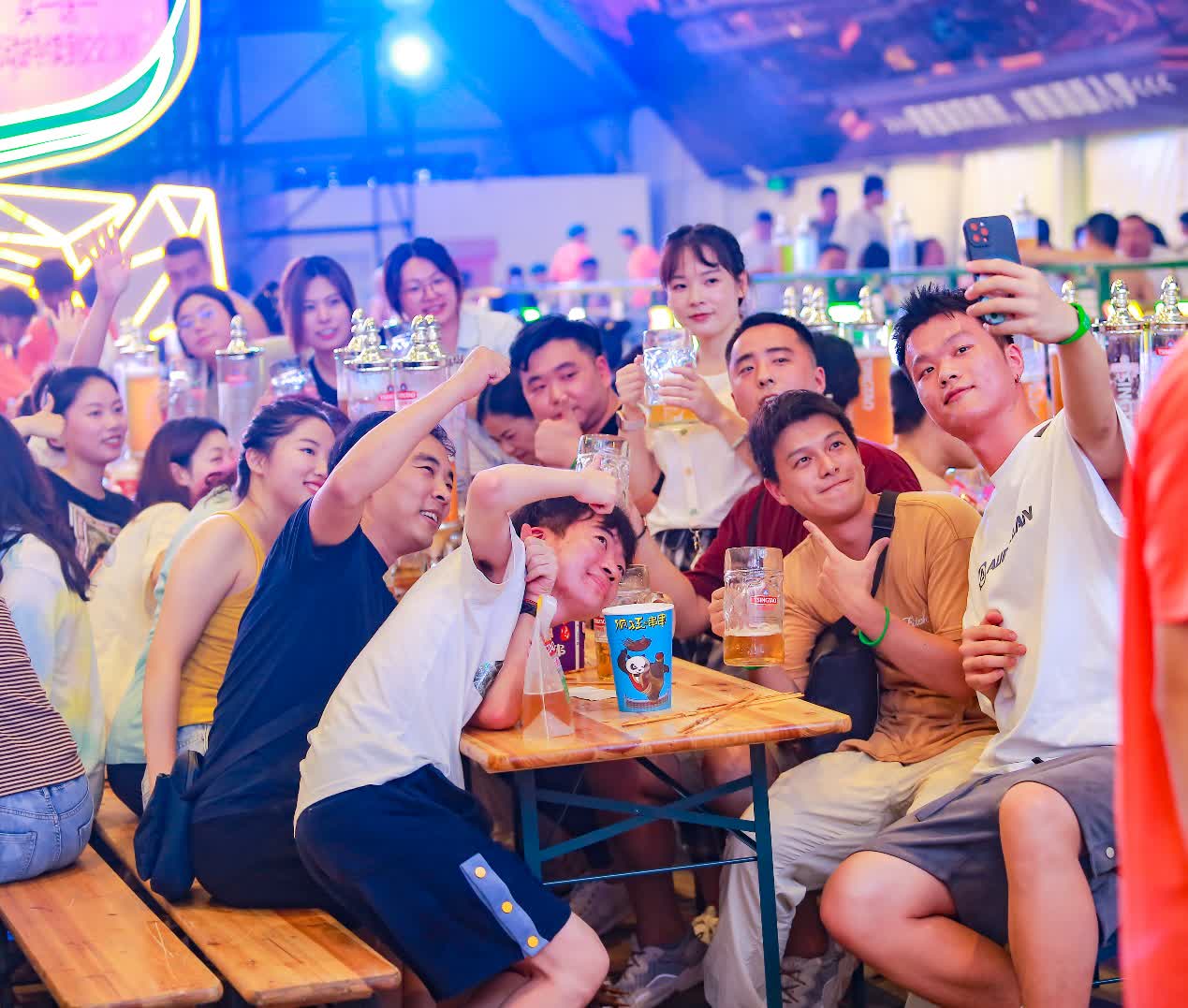 在金沙灘啤酒城的總共9個大篷中,「東道主」青島啤酒設立1903大篷和純生大篷兩處大篷,其中1903大篷面積為3000平方米、純生大篷面積為1500平方米,為遊客帶來沉浸式啤酒體驗,滿足消費者狂歡。每一屆的青島啤酒節,酒客恣意狂歡、大口豪飲、舉杯歡慶,讓豪情直衝雲霄,最火爆的場景總會出現在青島啤酒大篷內。