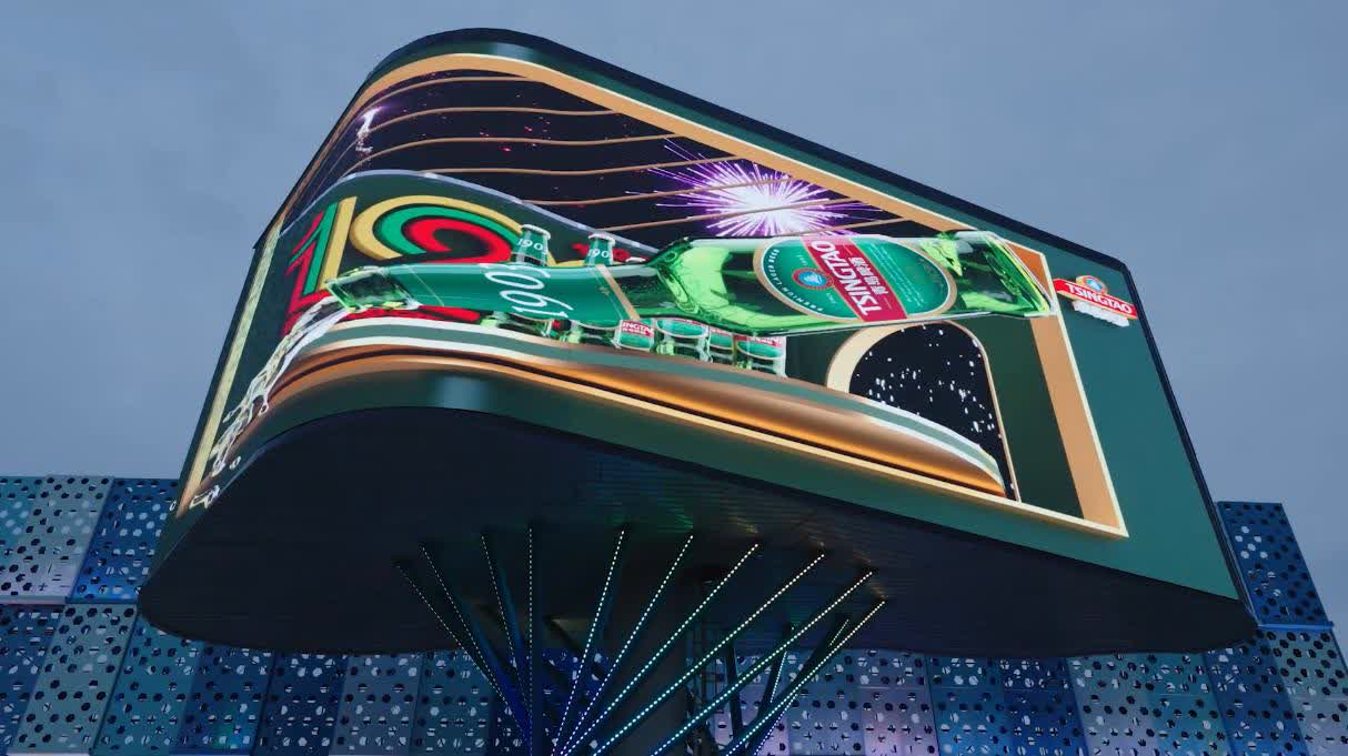 極具視覺衝擊的裸眼3D大屏上,巨型青島啤酒呼之欲出,彷彿天上來酒,與遊客進行親密接觸。