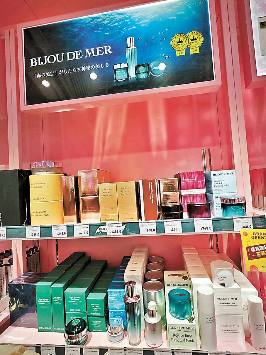 除了彩妝品,新店更獨家引進日本貴婦級品牌BIJOU DE MER,其皇牌產品海洋幸福面膜採用萃取自海洋的活膚成分,含有大量微量元素,能有效激活老化細胞,達至減淡細紋、緊緻及提拉作用,名人張柏芝、佘詩曼及張鈞甯都是其捧場客!此外,日本護膚品牌AXXZIA的熱賣產品多效修復眼膜許多日本高級美容院都在用,超薄質感眼膜能緊貼眼部,煥醒眼周肌底細胞,提升眼部輪廓。