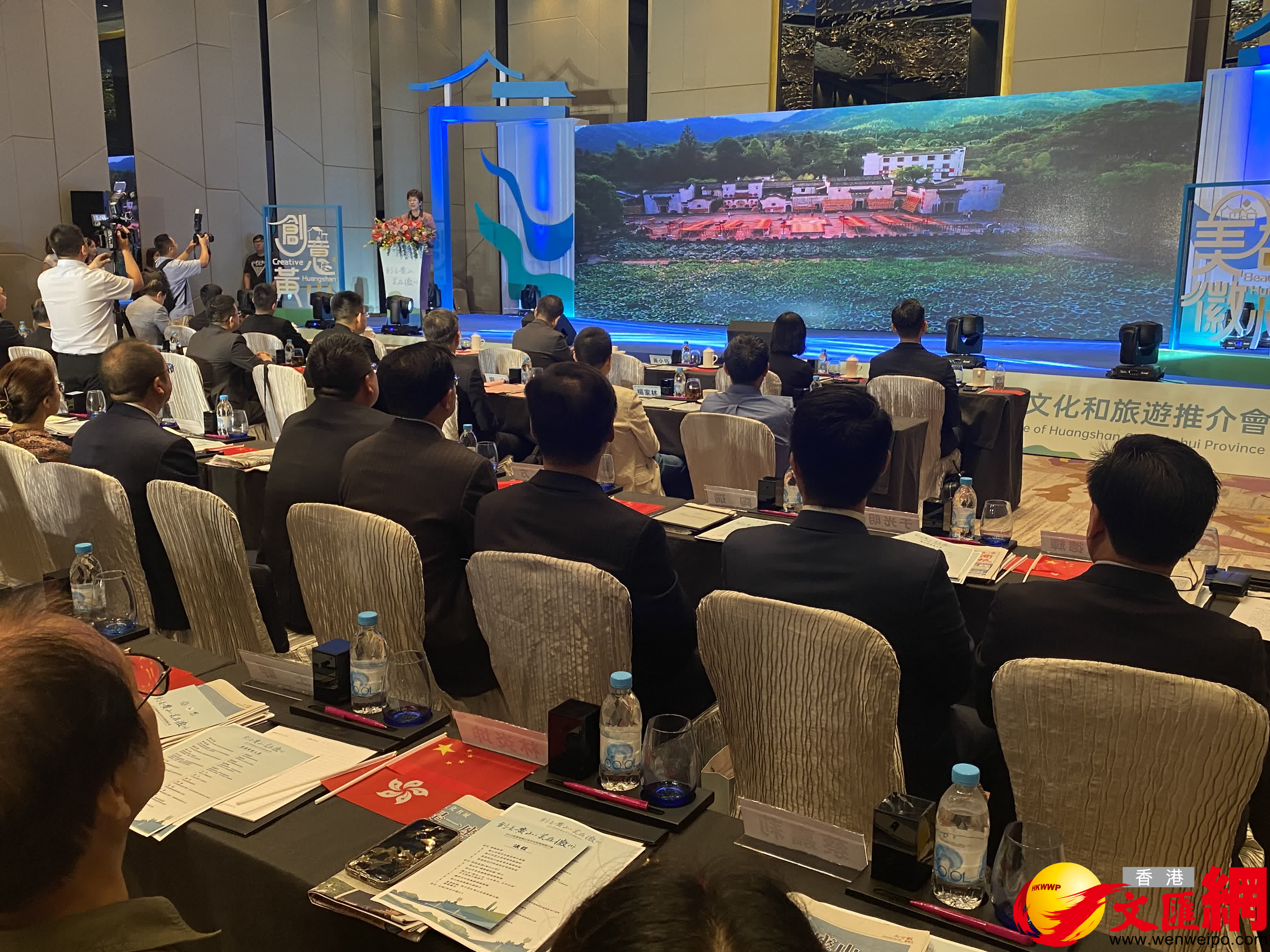 (香港文匯網記者 趙臣)8月4日,2023安徽省黃山市文化和旅遊推介會在香港九龍東皇冠假日酒店舉行。本次推介會以「創意黃山 美在徽州」為主題,就黃山市打造「國際會客廳」及獨特的旅遊文化資源進行推介。黃山市委書記凌雲,特區政府商務及經濟發展局副局長陳百里,港區全國政協委員、香港各界文化促進會榮譽顧問、香港啟星投資有限公司董事長蔡榮星,中央政府駐香港特別行政區聯絡辦公室經濟部副部長譚亞波等到會,香港旅遊界及社團等嘉賓,共100多人參加。