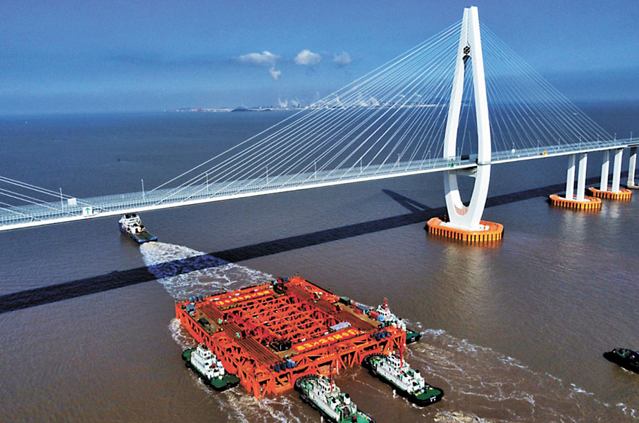 這座刷新多項世界紀錄的大橋對裝備和施工都帶來了新的挑戰。從水下基礎到鋼樑製造架設等全過程產生多項新工法、新工藝,催生了新型鑽孔機、自浮式鑽孔平台等一系列新裝備和設施。目前大橋的主墩基礎已經全部開工,預計2025年開始架樑,2028年將實現主體完工。