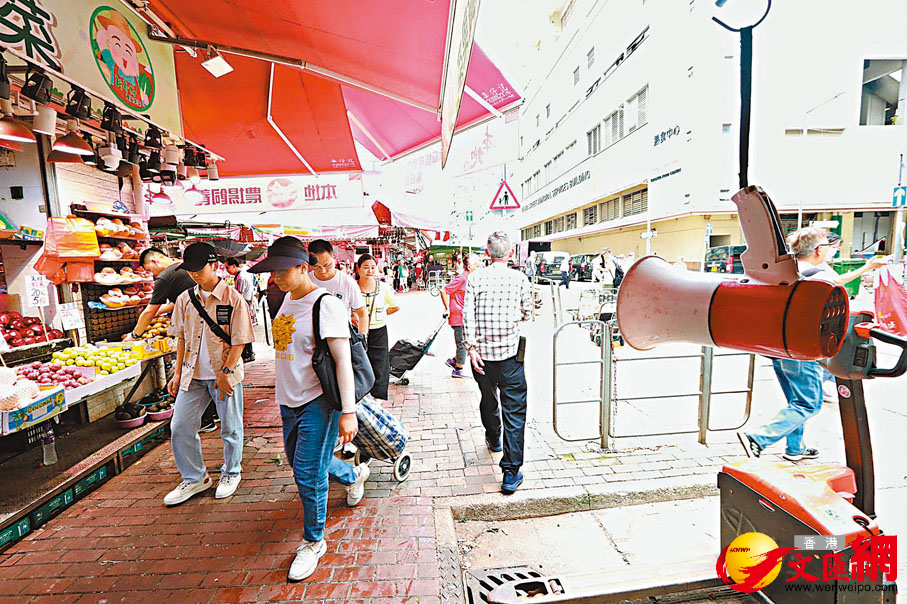(香港文匯報記者 張弦)香港特區政府擬修訂噪音管制條例,規管店舖使用揚聲器等行為,並引入定額罰款1萬元制度,即日起諮詢公眾兩個月。深水埗一直是噪音重災區,香港文匯報記者昨日到北河街街市,還未到埗,遠遠已聽見「新鮮蔬菜10蚊兩斤」、「荔枝40蚊3斤」的叫賣聲,抵達後更體驗到何謂「環迴立體聲」,幾間水果店、蔬菜店及肉檔同時使用揚聲器叫賣,相當吵耳。有幫襯的市民及樓上居民向記者表示,叫賣聲擾民存在已久,返夜班居民日間「無覺好瞓」。連在附近擺檔的商戶也表示,長期受叫賣聲滋擾,收檔後耳邊總是「嗡嗡聲」,支持政府修例讓居民耳根清淨。