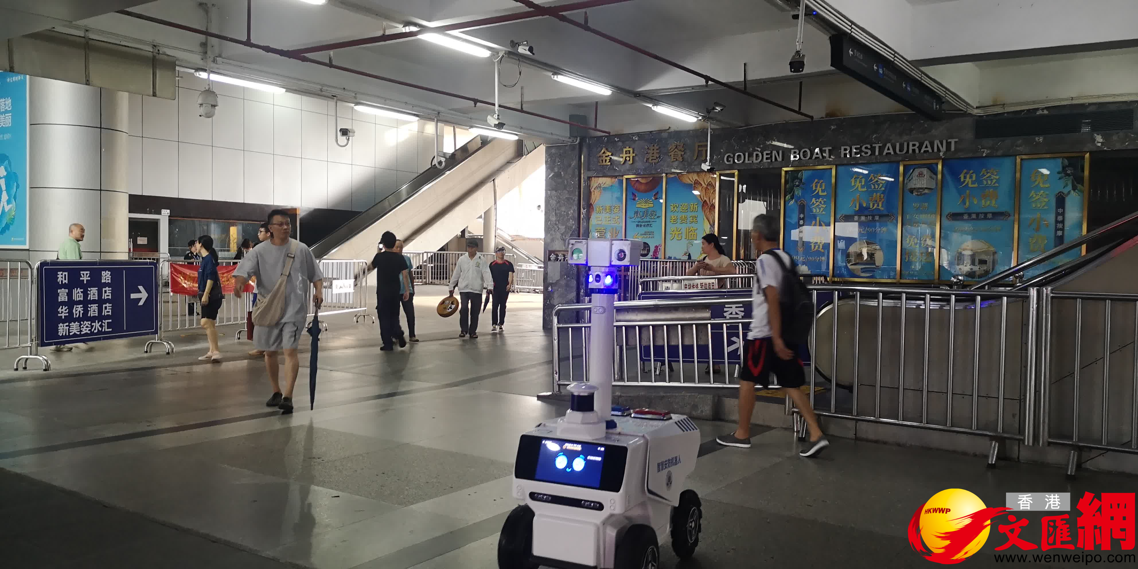「禁止逆行」、「口岸區域禁止任何人以任何形式攬客」......在羅湖口岸1號門外圍,類似的標語隨處可見,十幾名工作人員在現場巡查,並為剛剛入境深圳的港人耐心解答相關問題。值得一提的是,一名智能機械人在相應的區域進行移動播報,提醒市民搭乘正規運營車輛。