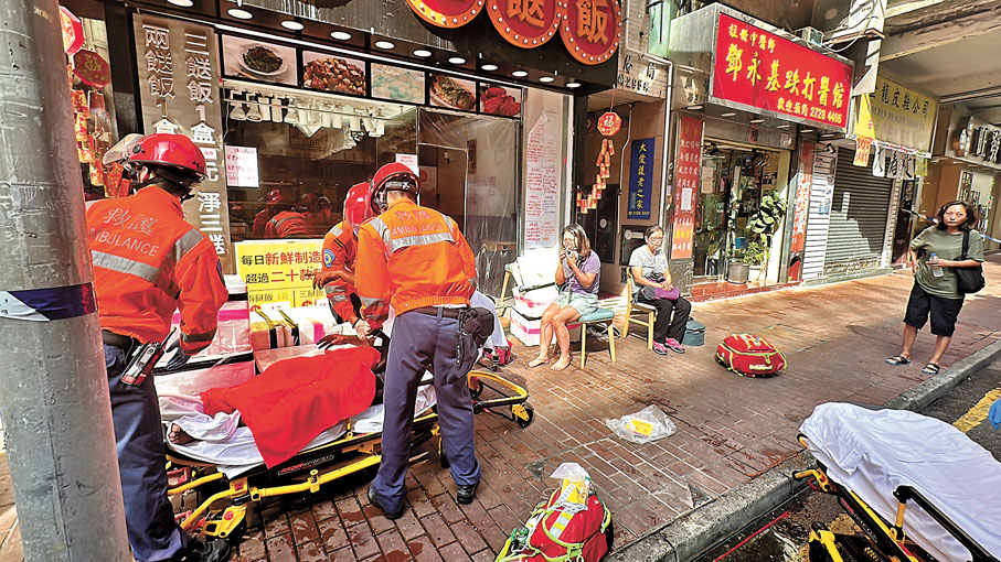 (香港文匯報記者 蕭景源)深水埗一幢有63年歷史及劏房林立的「三無大廈」唐樓,昨日上午有劏房住戶燒炭自殺釀火警,「小火大煙」充斥狹長樓梯封堵逃生路,居民被困焗吸濃煙揮手求救,消防和警方救出37名居民,5人送院治理,兩人命危。是次火警再次曝露「三無大廈」的逃生危機,同時也揭示這類「古董樓宇」增設消防設施的「老大難」問題仍未解決。民建聯區議員劉佩玉巡視現場後表示,「三無大廈」樓梯照明差、雜物阻塞通道,又無消防水缸及防煙門,但因沒有法團,以至無法遵守《消防安全(建築物)條例》增設防火設施或大型維修,構成火警逃生隱患。